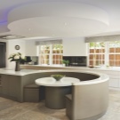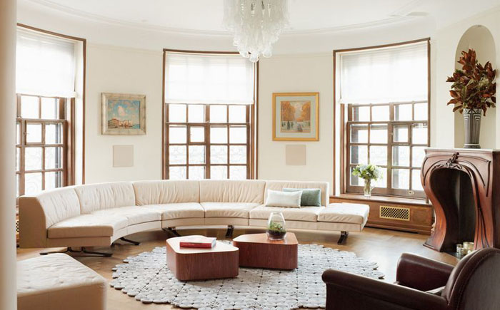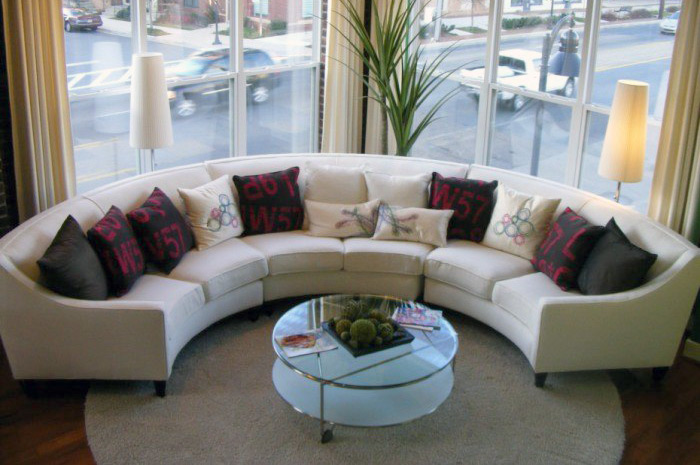 Seuls les concepteurs expérimentés peuvent facilement y faire face. Vous devez donc écouter certaines de leurs recommandations. En les suivant, vous pourrez non seulement placer correctement le mobilier en demi-cercle, mais également transformer toute la pièce: il sera élégant et unique.