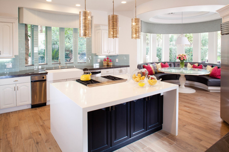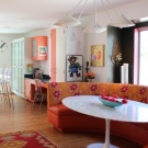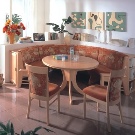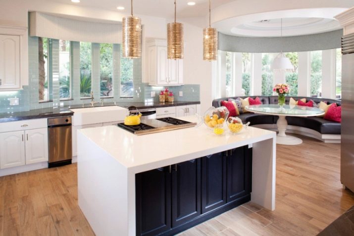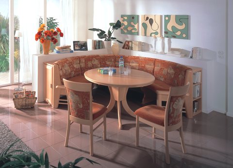 Bien mieux, au lieu d’un entrepôt de niche technologique, dans lequel vous pouvez stocker de la nourriture, installer un canapé semi-circulaire de type non amovible. Sous le siège d'un tel canapé, il y a beaucoup d'espace pour y ranger des ustensiles de cuisine ou de la vaisselle qui sont rarement utilisés.