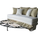Dans ce cas, la surface de couchage représente le verso du dossier et de l’assise. L'avantage de ce mécanisme est qu'il existe un tiroir pour le linge de lit dans la niche coulissante.