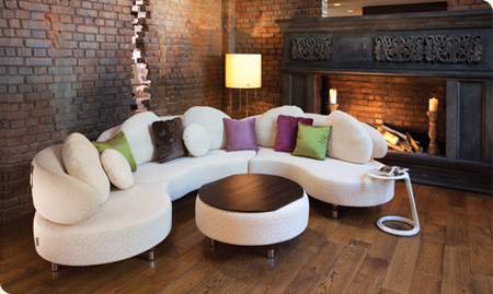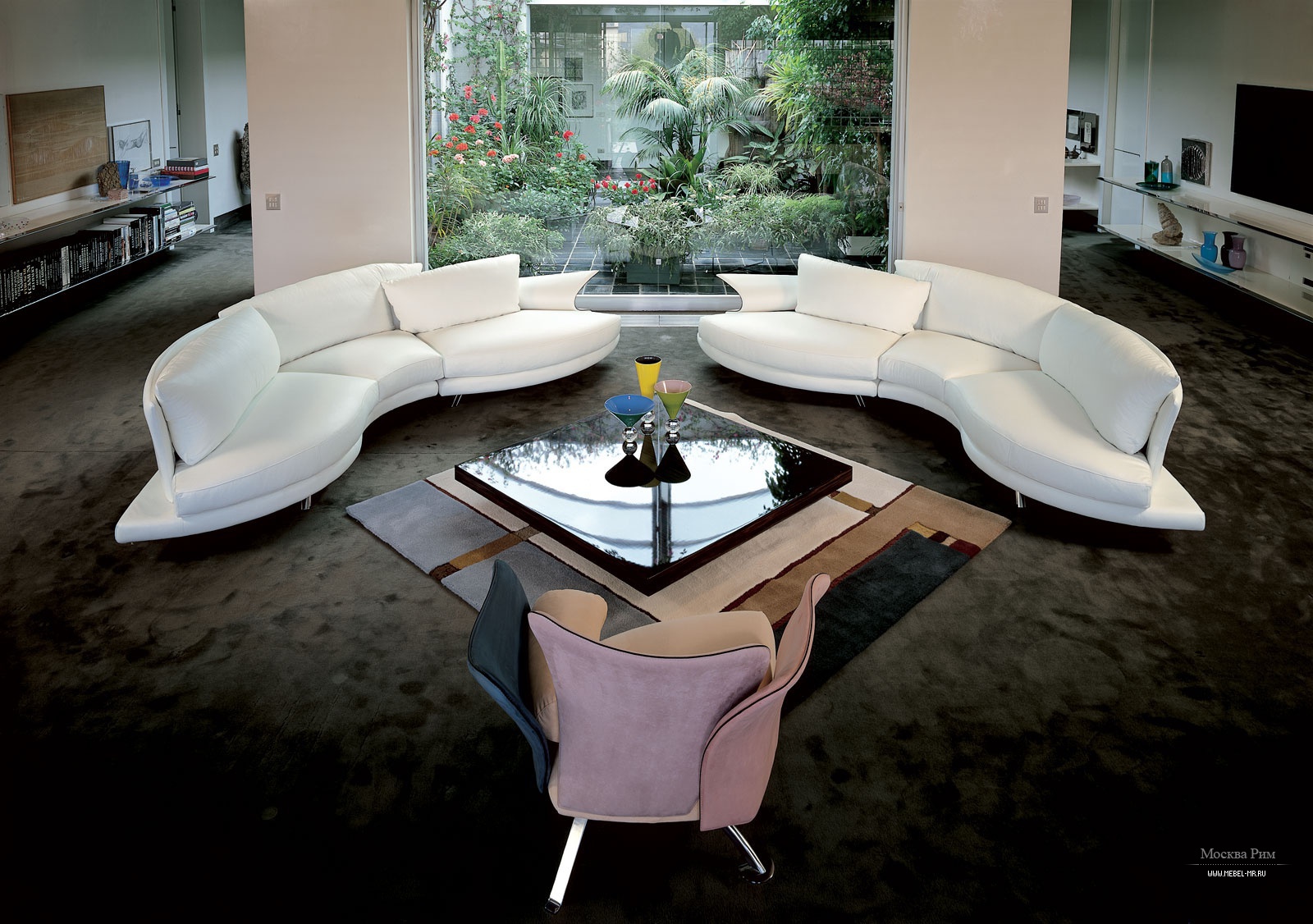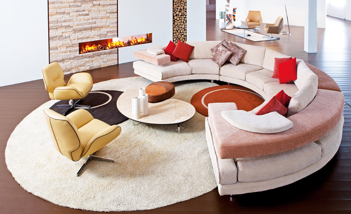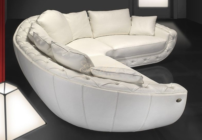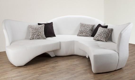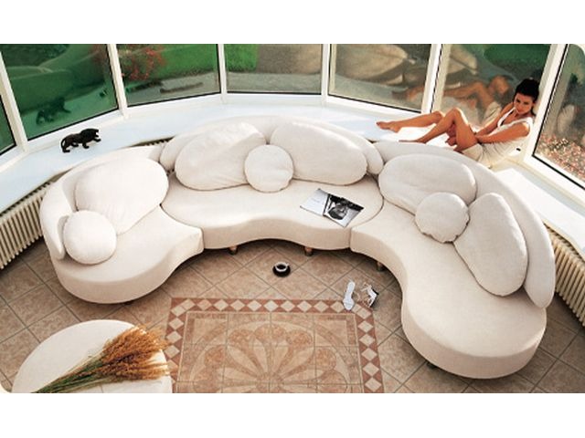 Pour le coin salon, les canapés sont des meubles rembourrés traditionnels. Les appartements modernes peuvent souvent avoir une forme irrégulière et des murs incurvés. Dans de telles salles, un mobilier non conventionnel serait la solution.