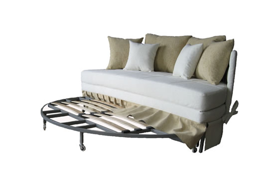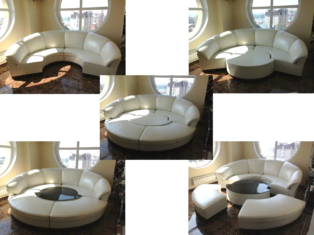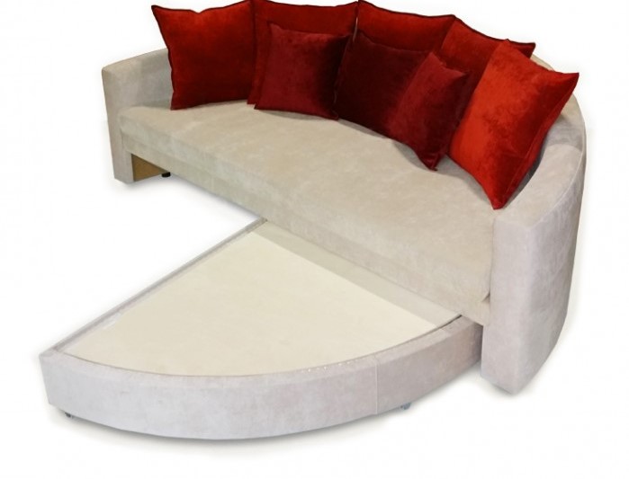 Les mécanismes par lesquels la structure rectangulaire est mise en place ne conviennent pas pour un semi-circulaire ou ne peuvent pas être appliqués du tout. C’est pour cette raison que la transformation d’un canapé en forme de demi-cercle en canapé-lit s’effectue selon les méthodes propres à cette forme. En tant que méthode la plus courante, utilisez le modèle de sortie, qui utilise un matelas pliant ou qui se soulève.