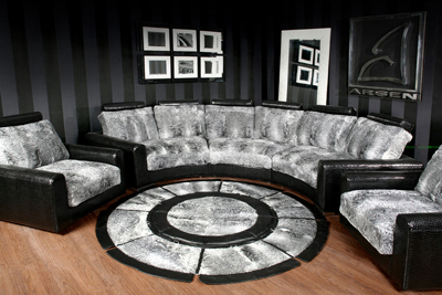 Les concepteurs de canapés en demi-cercle ont été étudiés selon les souhaits des clients, ce qui a permis d’établir un mobilier avec un capitonnage non standard. Le thème "bestial" s'est avéré être le plus populaire - avec des tigres, des léopards et des zèbres en couleur. Les fleurs lumineuses, les tissus synthétiques modernes et les substituts du cuir ne sont pas moins populaires.