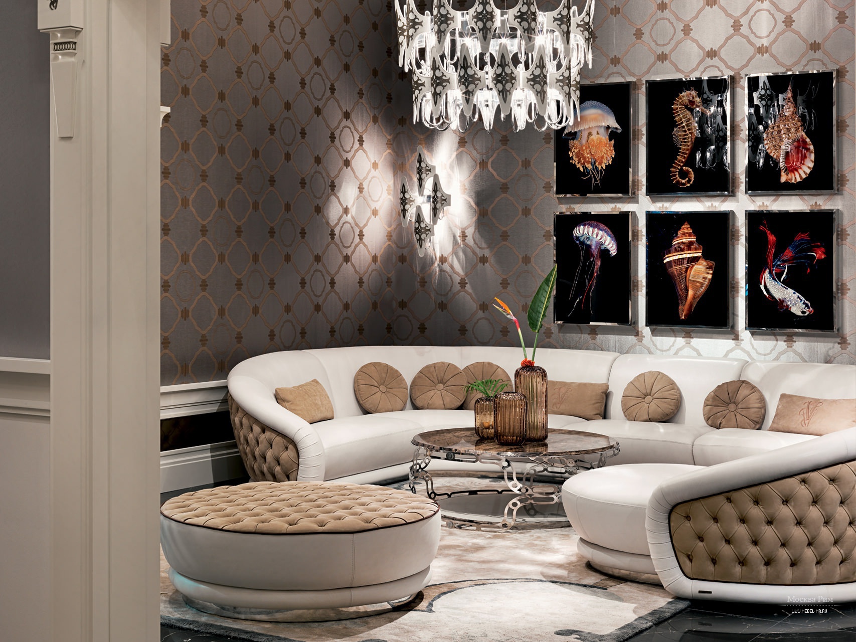 La forme de mobilier non standard attire toujours notre attention, que ce soit dans le salon du meuble ou un élément de l'intérieur d'un salon. Ainsi, récemment, un canapé semi-circulaire qui orne le salon est devenu une véritable tendance dans les intérieurs branchés.