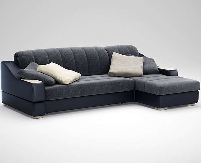 Les matelas orthopédiques permettent au canapé de devenir un endroit confortable pour dormir. Le coin salon supplémentaire est constitué de modules d'angle et de fauteuil. L'espace ainsi obtenu est suffisant pour s'allonger et se reposer.Sur les accoudoirs et à l'arrière du module d'angle, il y a des comptoirs pratiques.