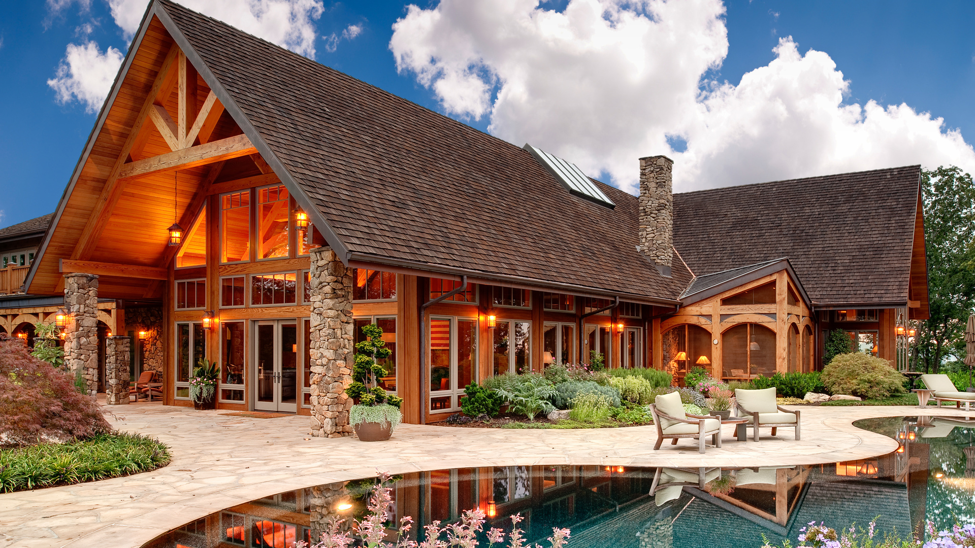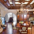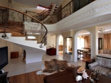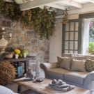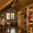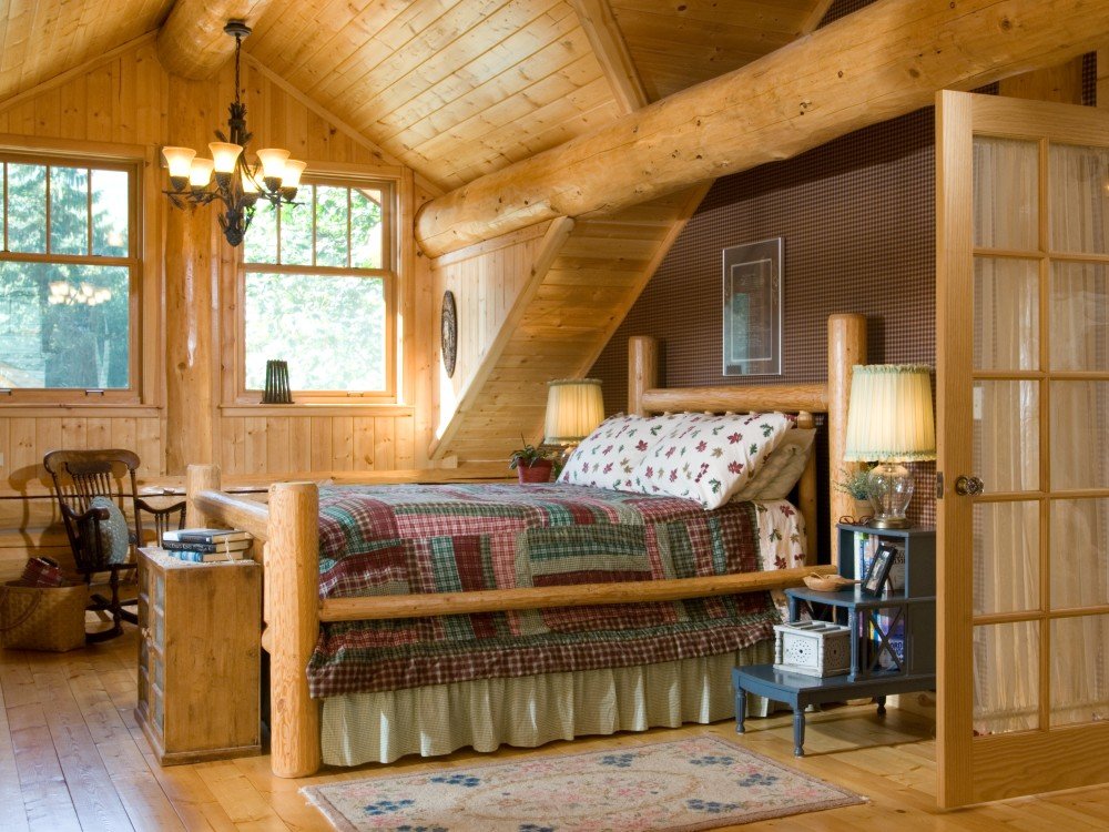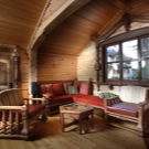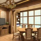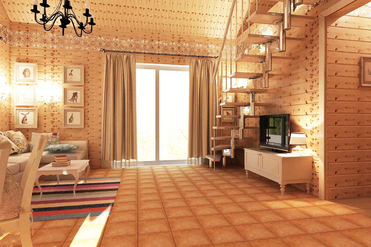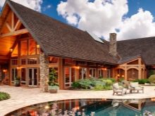 Ce sont des pièces spacieuses et lumineuses, des poutres massives et une abondance de bois. La décoration intérieure des murs n’est pratiquement pas nécessaire, vous ne devez traiter que le bois, en lui donnant la nuance désirée, associée à la couleur du mobilier choisi. Pour les inserts décoratifs, vous pouvez choisir la pierre naturelle ou artificielle. Les éléments de mobilier et de décoration sont assez simples, pas surchargés de détails.