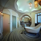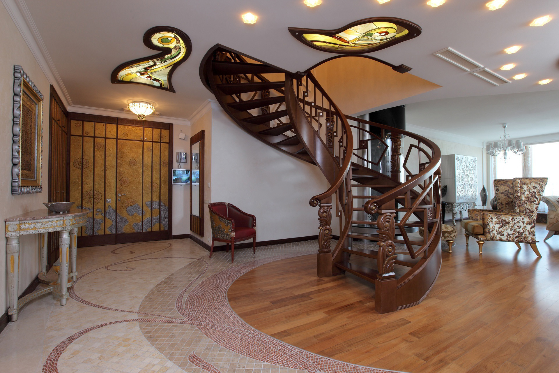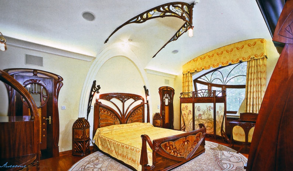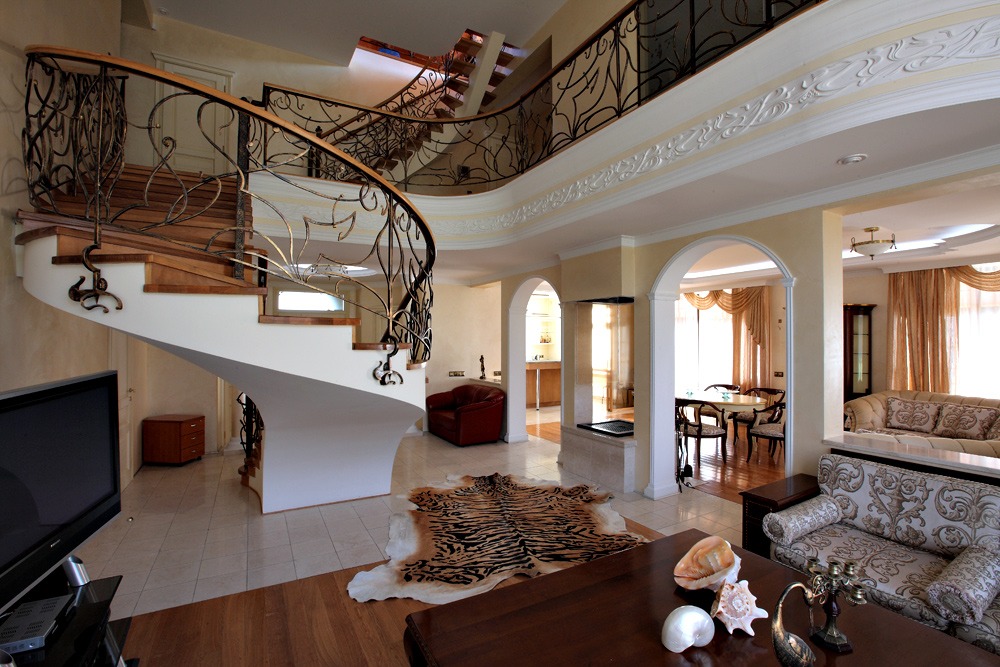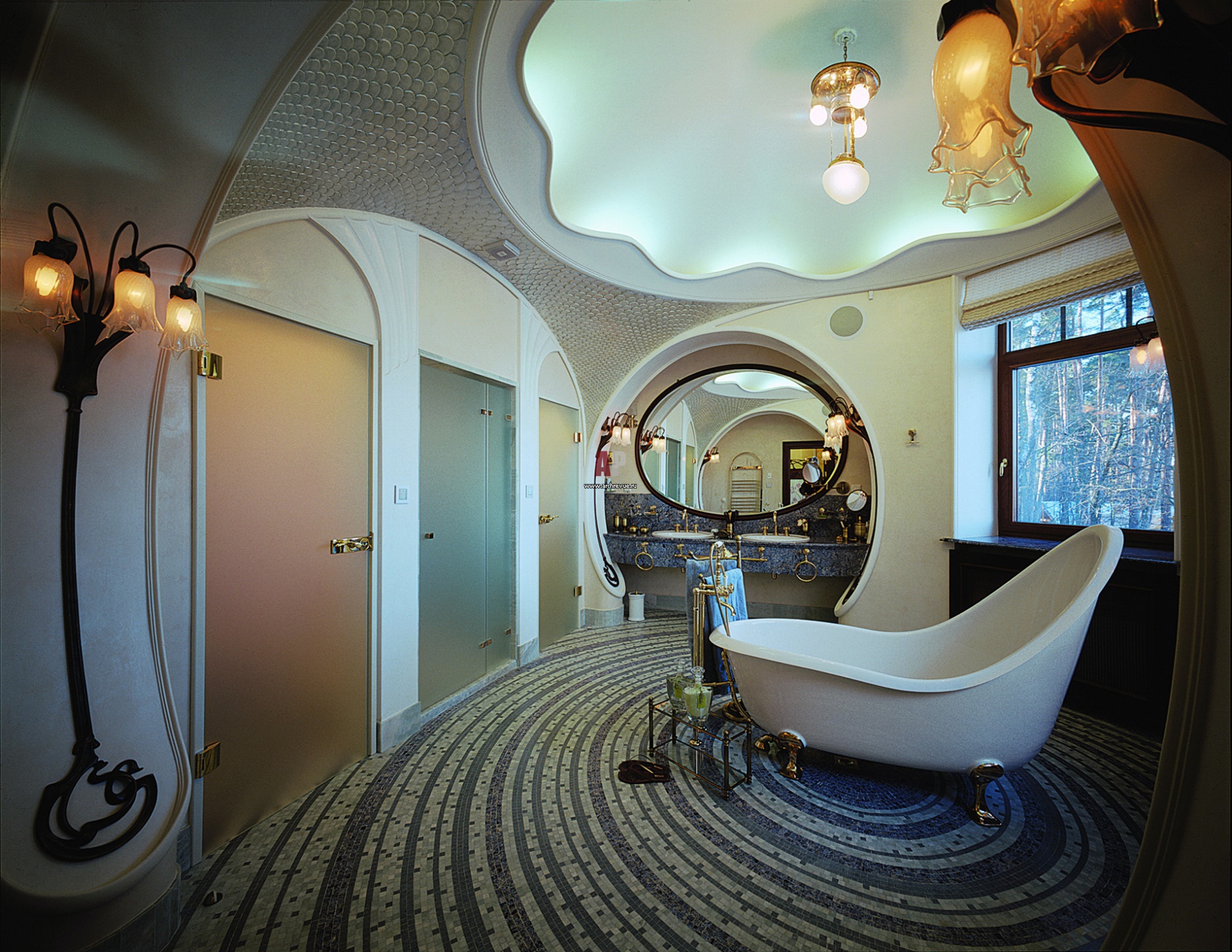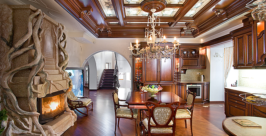 La disposition de la maison à la manière d'un chalet est assez inhabituelle, car elle reprend celle des pavillons de chasse en Suisse. Des cornes, des peaux, des oiseaux et des animaux empaillés, ainsi que d'autres trophées sont choisis pour décorer l'espace. Les murs doivent être finis avec de la pierre, les meubles doivent être principalement de couleurs sombres, il y a un grand nombre d'éléments forgés.