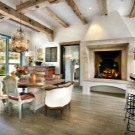 - Rendre l'espace de vie dans le style toscan va créer un espace avec le "goût de l'Italie". Des poutres sont requises au plafond et des carreaux de céramique multicolores au sol et sur la table. Pour l’éclairage, utilisez des luminaires délibérément abaissés: fixés au mur ou encastrés au plafond. Les plantes vivantes sont un attribut obligatoire du style toscan. Décorez donc les pièces avec des pots de fleurs ou des pots sur le rebord de la fenêtre.