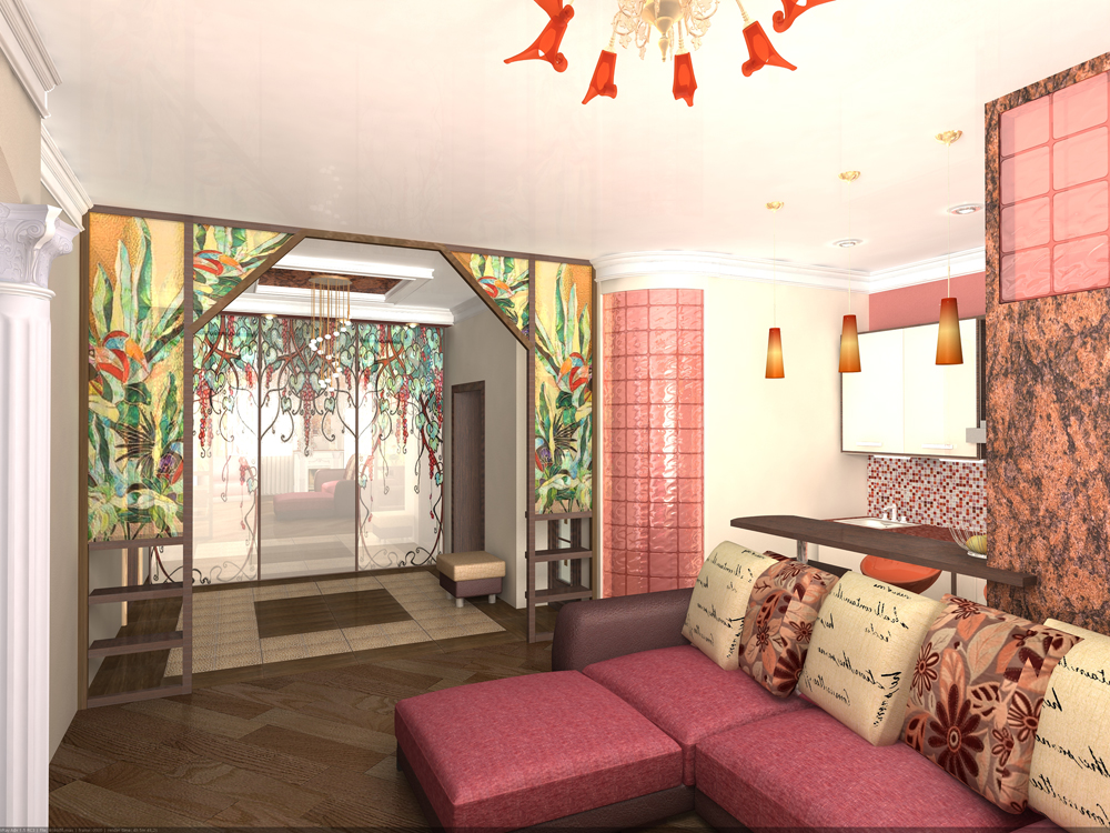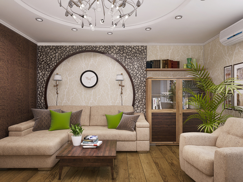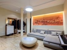 Si chaque mur de l'appartement est recouvert d'un mastic et que le papier peint est collé avec un ornement différent, il se révélera être un appartement très confortable et agréable. En raison des différents modèles, les murs acquièrent l'illusion de l'éloignement les uns des autres.