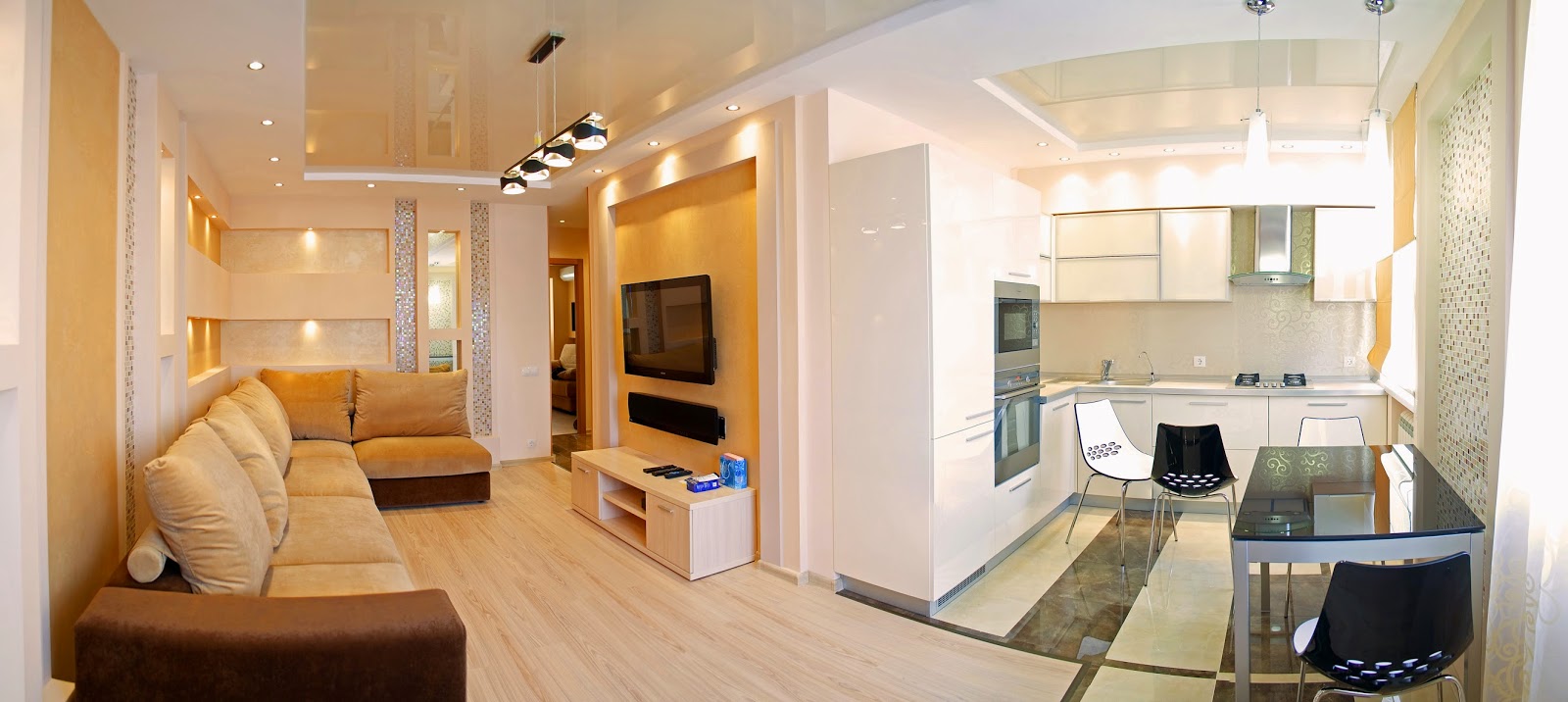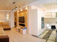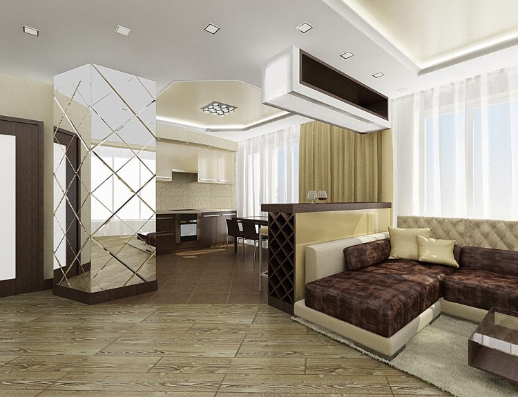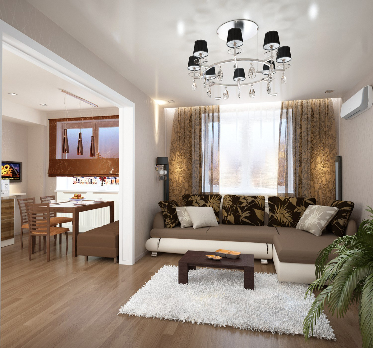 Parfois, il suffit de percer un petit trou dans le mur., appliquez un peu d’imagination et vous obtiendrez finalement une salle extraordinaire. Ceci s'applique au mur entre le salon et la cuisine. Cependant, il ne faut pas oublier que, à différentes périodes, il a été utilisé comme mur de soutènement. Il est nécessaire de clarifier avec un spécialiste pour éviter des conséquences désagréables.