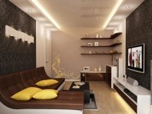 Il convient de prendre en compte le fait que vous n’avez pas besoin d’acheter d’énormes lustres gigantesques pour l’éclairage. La meilleure option sont les projecteurs. Le plafond bas est décoré, comme les murs, de couleurs claires.. Contrairement aux teintes sombres, les teintes claires ne «font pas pression» sur les résidents des appartements. Parfois, utilisez des miroirs. Une autre option consisterait également à utiliser des marches à plusieurs niveaux au plafond, qui peuvent également agrandir visuellement un appartement.