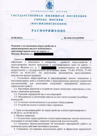 Par conséquent, pour que l'appartement devienne une pièce confortable et spacieuse après la rénovation, adaptée à une vie confortable, il est conseillé d'obtenir une licence auprès de l'organisation pour les projets de planification de logement.