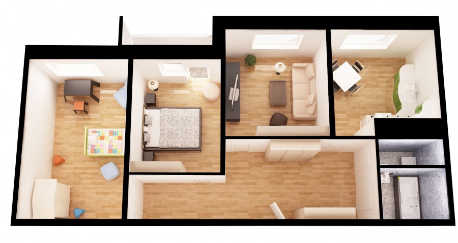 La dernière pièce est préférée comme chambre à coucher pour les enfants.