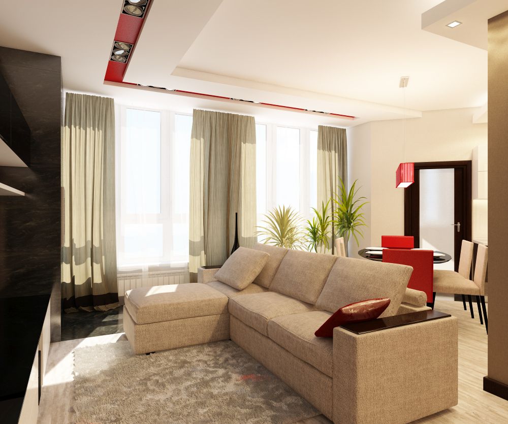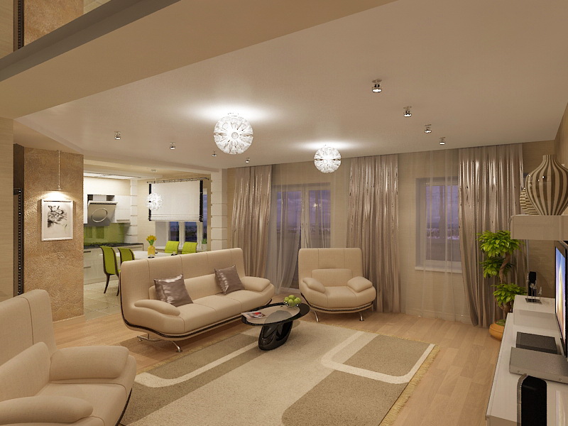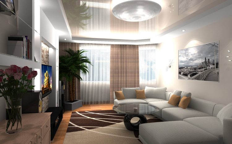 Un appartement de trois pièces deviendra parfois plus attrayant si vous utilisez des vases, des peintures et des cadres photo dans la conception. Il est souhaitable que l'appartement ait beaucoup de fenêtres. Masquez autant que possible les dispositifs d'éclairage, faites preuve d'imagination, par exemple, avec la lampe.