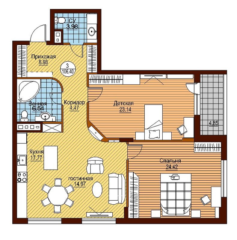 Si vos plans fournissent un dessin de l'appartement sur papier, vous devrez rassembler un certain nombre de documents nécessaires. Comme mentionné précédemment, l'avantage des appartements de trois pièces est un garde-manger intégré ou un placard, qui est inclus dans la configuration de l'appartement lui-même.