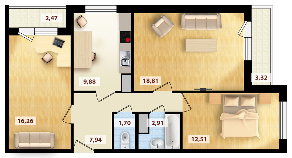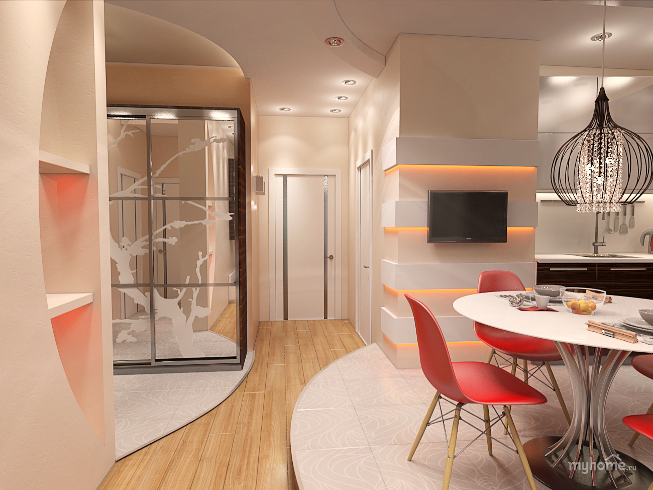 Les chambres adjacentes posent un énorme problème pour une famille de trois personnes ou plus. Pour augmenter la longueur du couloir, il est nécessaire de réduire les mètres carrés dans les salles. En fin de compte, les résidents peuvent être heureux de ne plus avoir à se déplacer d’une pièce à l’autre, il existe maintenant un couloir.