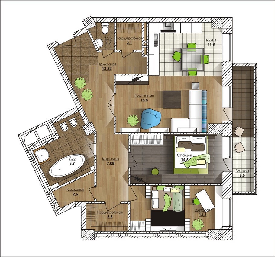 Planifier "Khrouchtchev" peut être non seulement fastidieux, mais aussi une occupation intéressante. Vous serez en mesure de montrer pleinement leurs capacités de conception. "Treshka" dans une maison de brique peut être votre création unique.