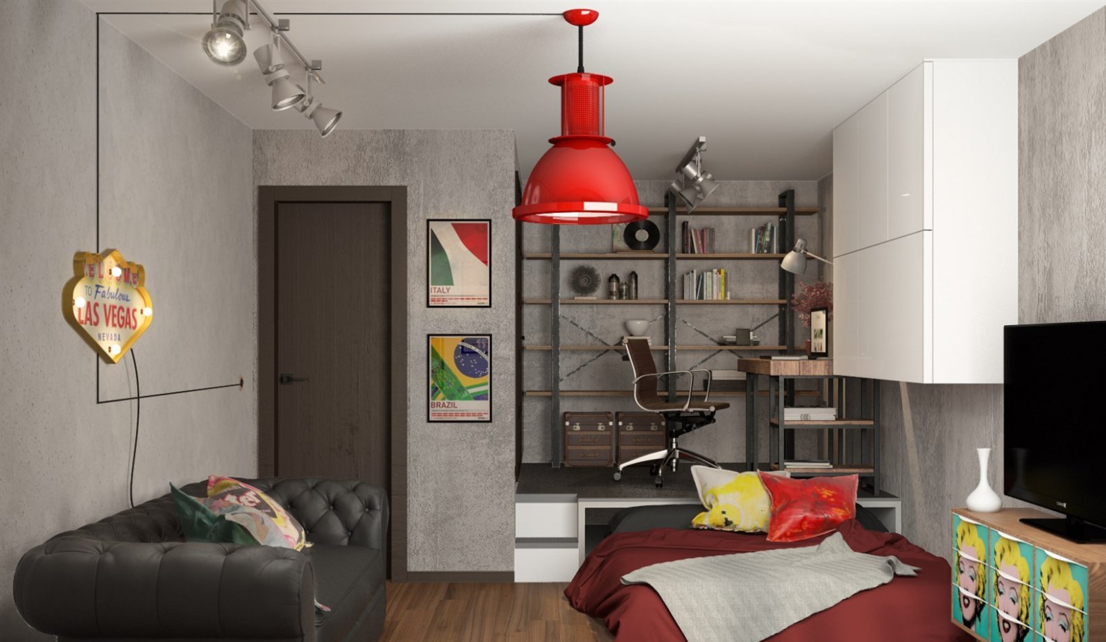Studio dans le style "loft": un désordre créatif à l'intérieur