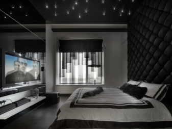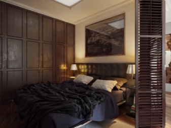 Avec une grande attention, vous devez faire attention à la conception du lit.Le lit doit être spacieux et confortable. Il peut être installé sur un podium spécial. La zone de couchage devrait avoir un éclairage supplémentaire.