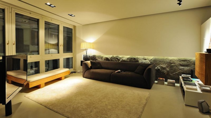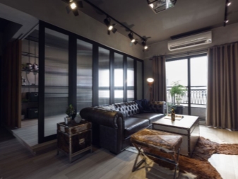 Bien souvent, les appartements pour hommes sont fabriqués dans un style brutal. Cette direction est caractérisée par la simplicité, la sévérité, l'austérité, le manque de décor et les finitions habituelles (béton uniquement). L'intérieur est soigneusement pensé, chaque pièce a sa fonction propre. Les principales caractéristiques de cette salle sont la fonctionnalité urbaine et le confort.