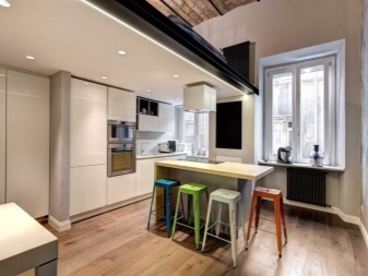À première vue, la cuisine est une pièce supplémentaire pour un homme jeune et solitaire, mais elle doit être dotée de tout l'équipement et du mobilier nécessaires. Au lieu de la table à manger standard, vous pouvez définir la barre.