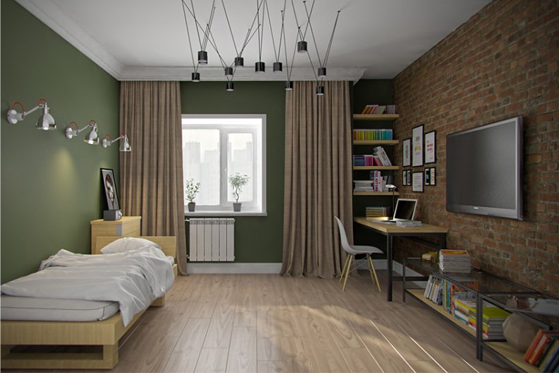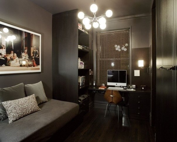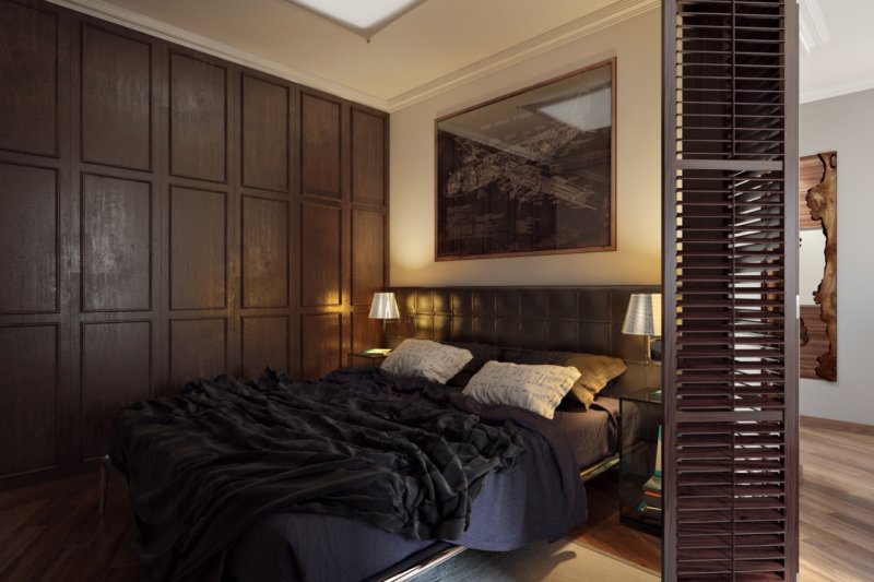 Une petite pièce rectangulaire aura l'air confortable si elle est faite dans des tons bruns. Une chambre pour homme de style moderne peut être décorée dans des couleurs sombres si elle est exposée au soleil.