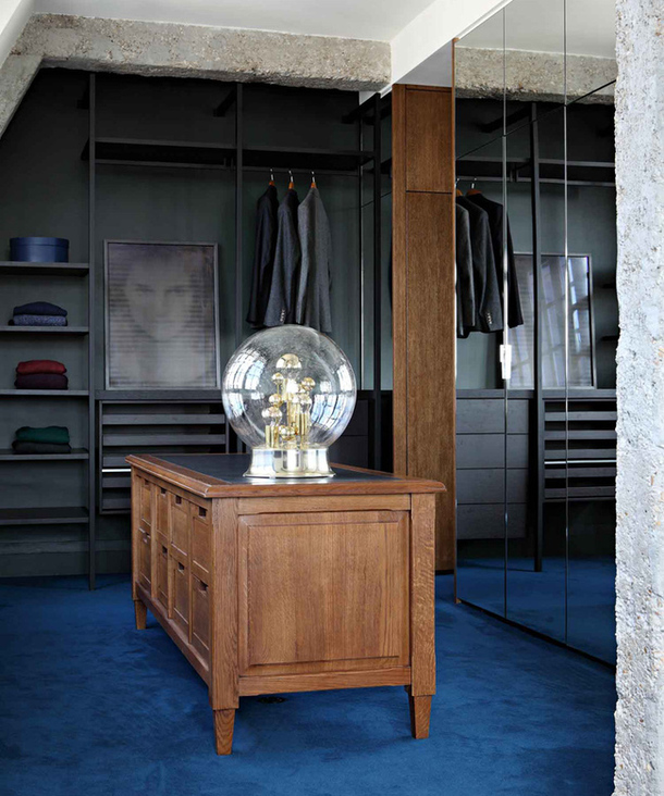 Le désordre dans ce style est inacceptable. Tout devrait être enlevé à sa place. Pour placer des vêtements, vous pouvez utiliser des boîtes, des niches, des étagères.