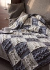 - Au fil du temps, vous pouvez passer à des options de conception plus complexes. Par exemple, dans la technique du patchwork, vous pouvez créer une couverture créative - la technologie est la même, mais vous devrez créer quelques points de plus, afin que la laine ne se détache pas à différentes extrémités.