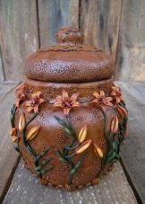 - De nombreux détails intéressants peuvent être créés à partir d'argile polymère. C'est un matériau pratique à utiliser, à partir duquel vous pouvez facilement sculpter n'importe quoi, le brûler au four à une température suffisamment basse et vous obtiendrez un produit ressemblant à du plastique. De la pâte polymère sont d'excellents kapsho et vases.
