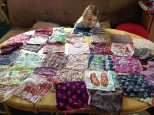 - Couper des carrés de la bonne taille de vos vieux vêtements. Ne pas oublier de prendre en compte les surplus de couture.