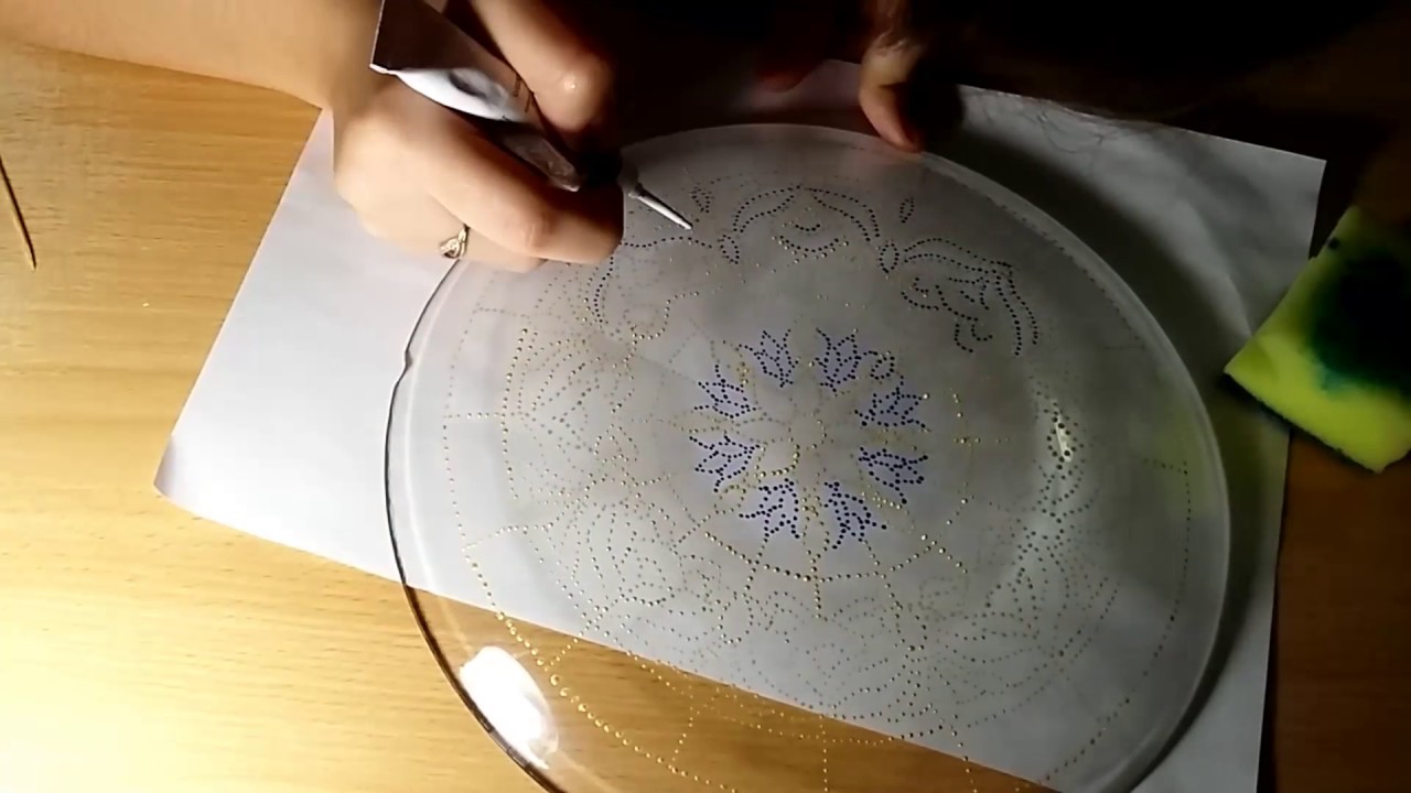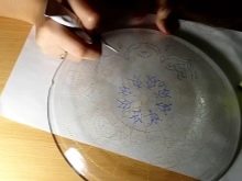 - Pour la première méthode, vous aurez besoin d’un contour pour dessiner sur du verre et des peintures teintées. Vous devez dessiner l’image désirée sur du papier, puis la fixer à l’arrière du verre et la dessiner avec un contour. Pour commencer, il sera plus facile de le faire sur un plateau. Attendez que le contour sèche et peignez le plat avec des couleurs conformément aux instructions. Un tel produit en verre décorera parfaitement l'intérieur de la cuisine.