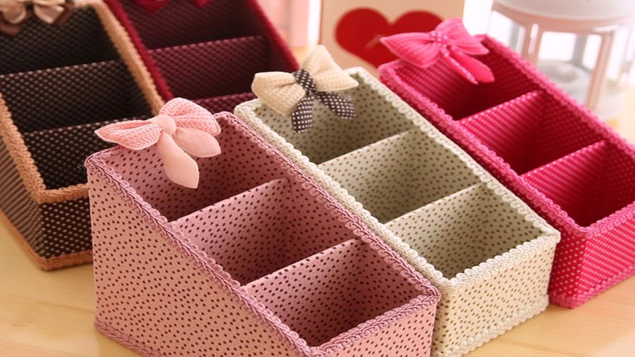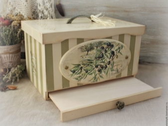 Il est également intéressant de décorer des récipients déjà fabriqués en bois et en plastique. De plus, la conception peut être faite sur une boîte ordinaire. Les options peuvent être très différentes: vous pouvez le coller avec du papier d'aluminium, envelopper avec des rubans de satin ou un beau tissu.