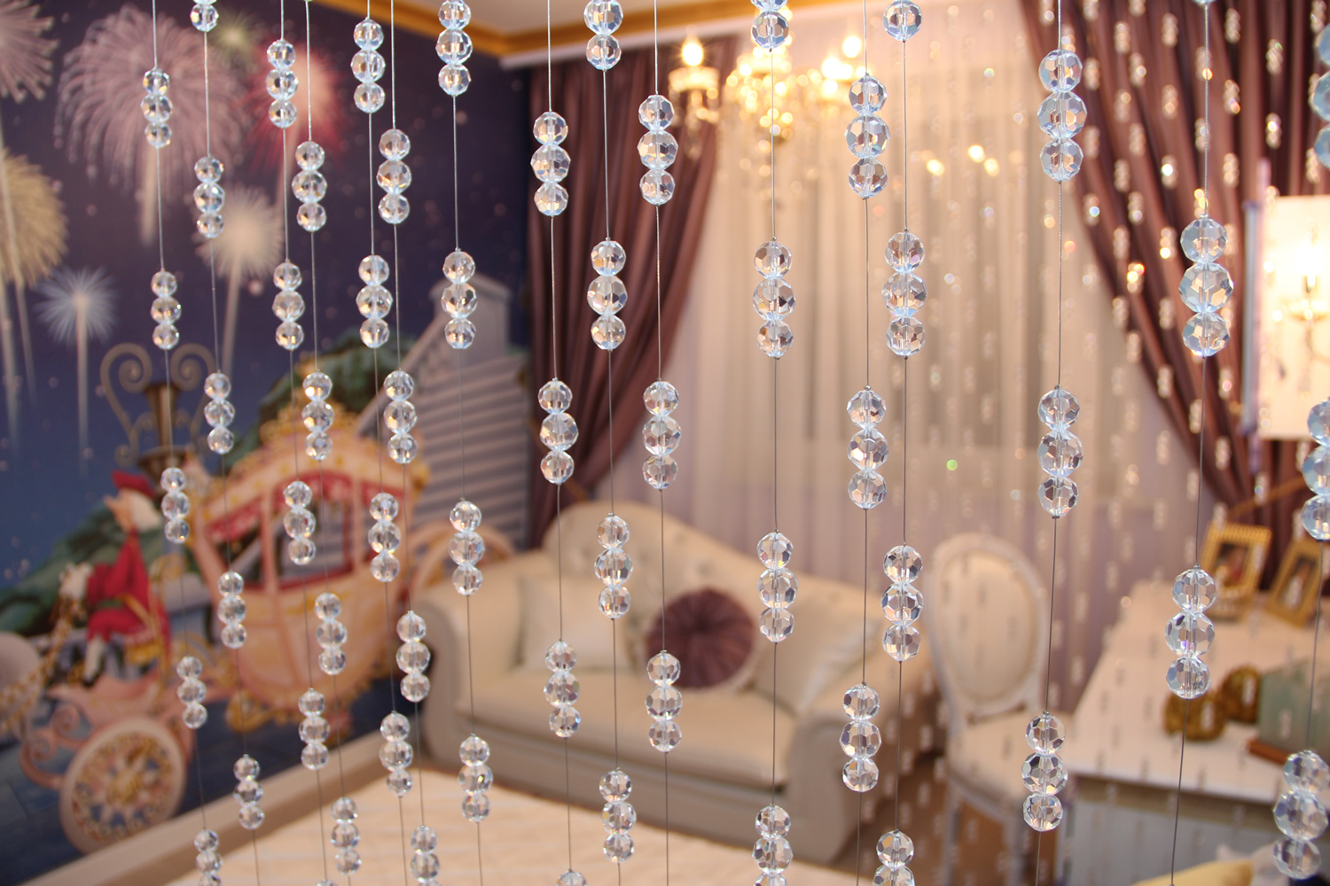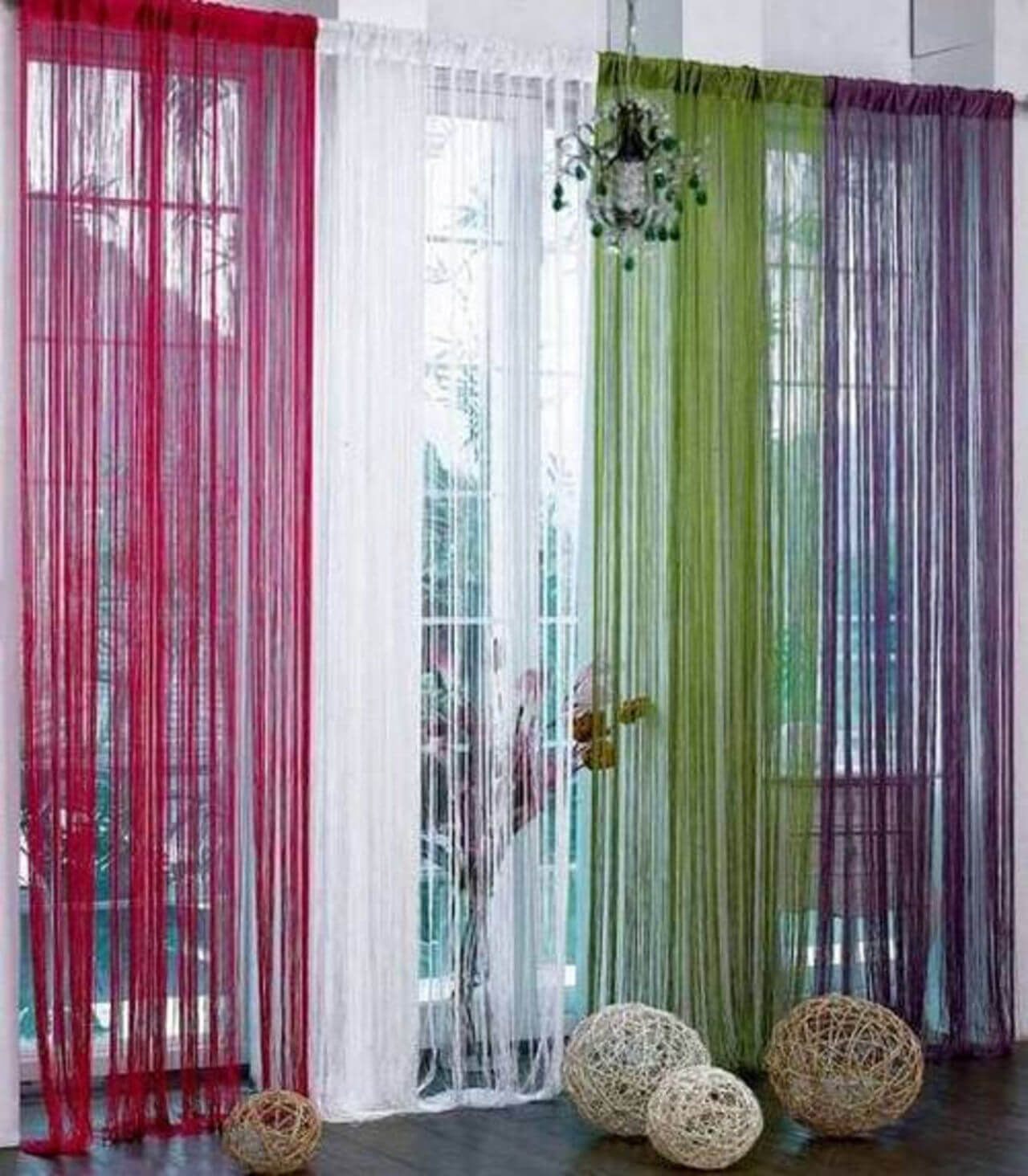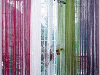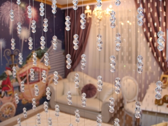 - Une option plus intéressante et plus longue consiste à fabriquer des rideaux de perles. Sur le fil, vous devez enfiler successivement des perles ou des perles de verre, puis les attacher toutes et coudre des crochets. Vous pouvez combiner des perles et des rubans.