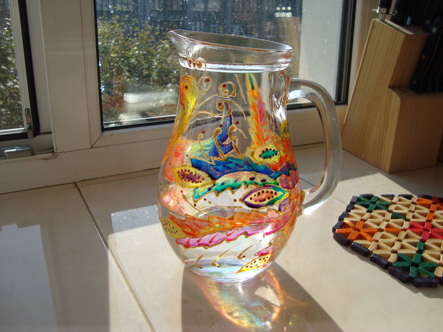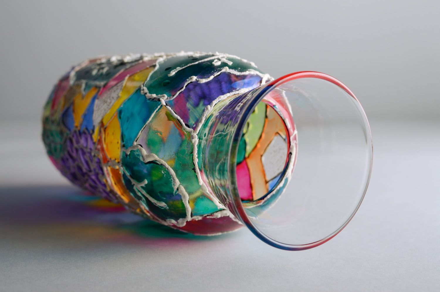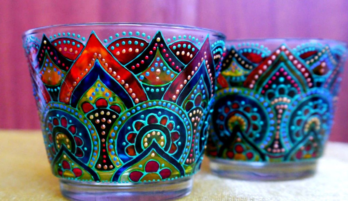 - Pour des intérieurs classiques, des objets en verre parfait, peints avec des peintures pour vitraux.