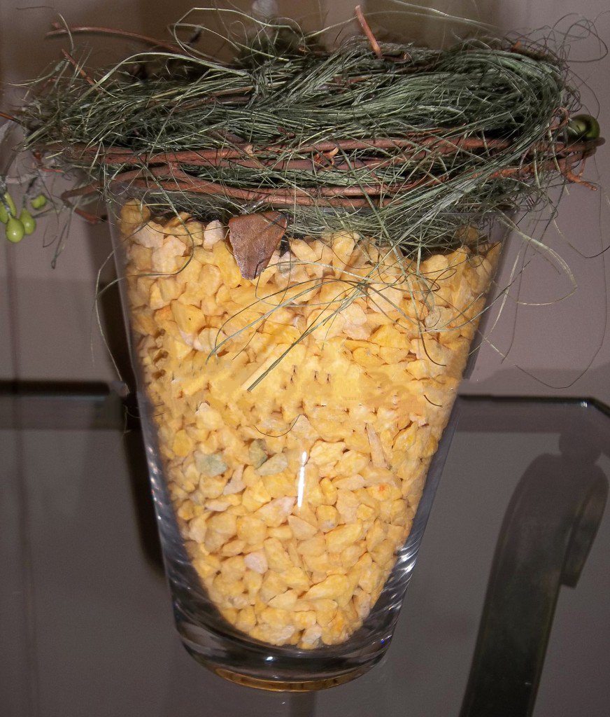 Si vous le remplissez de moitié de perles, vous pouvez utiliser un tel vase pour ranger cotons-tiges, rasoirs, brosses à dents ou pinceaux à maquillage.