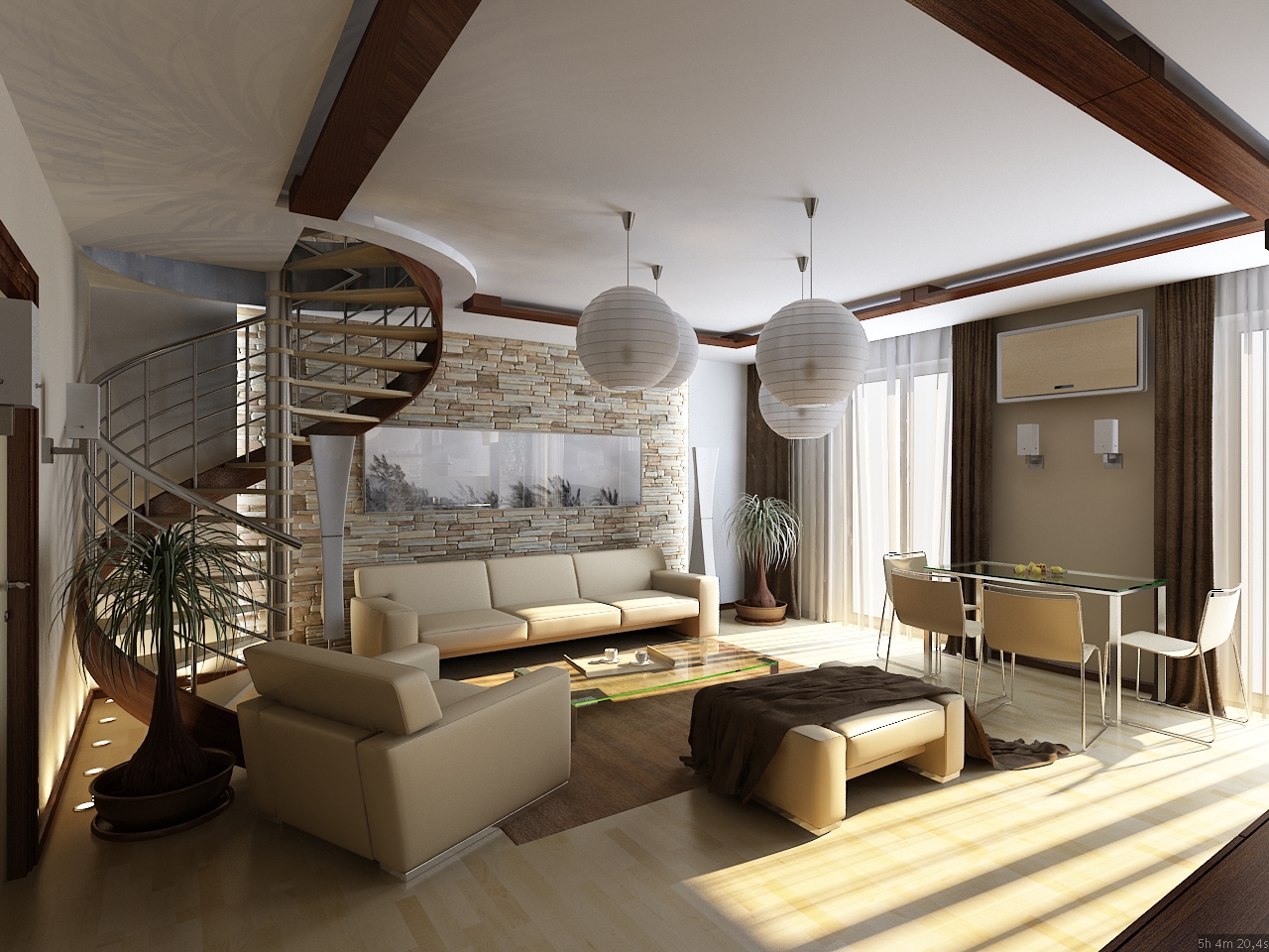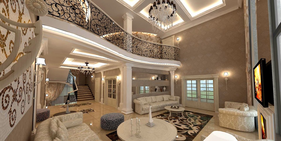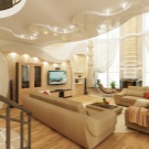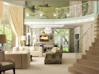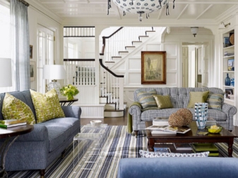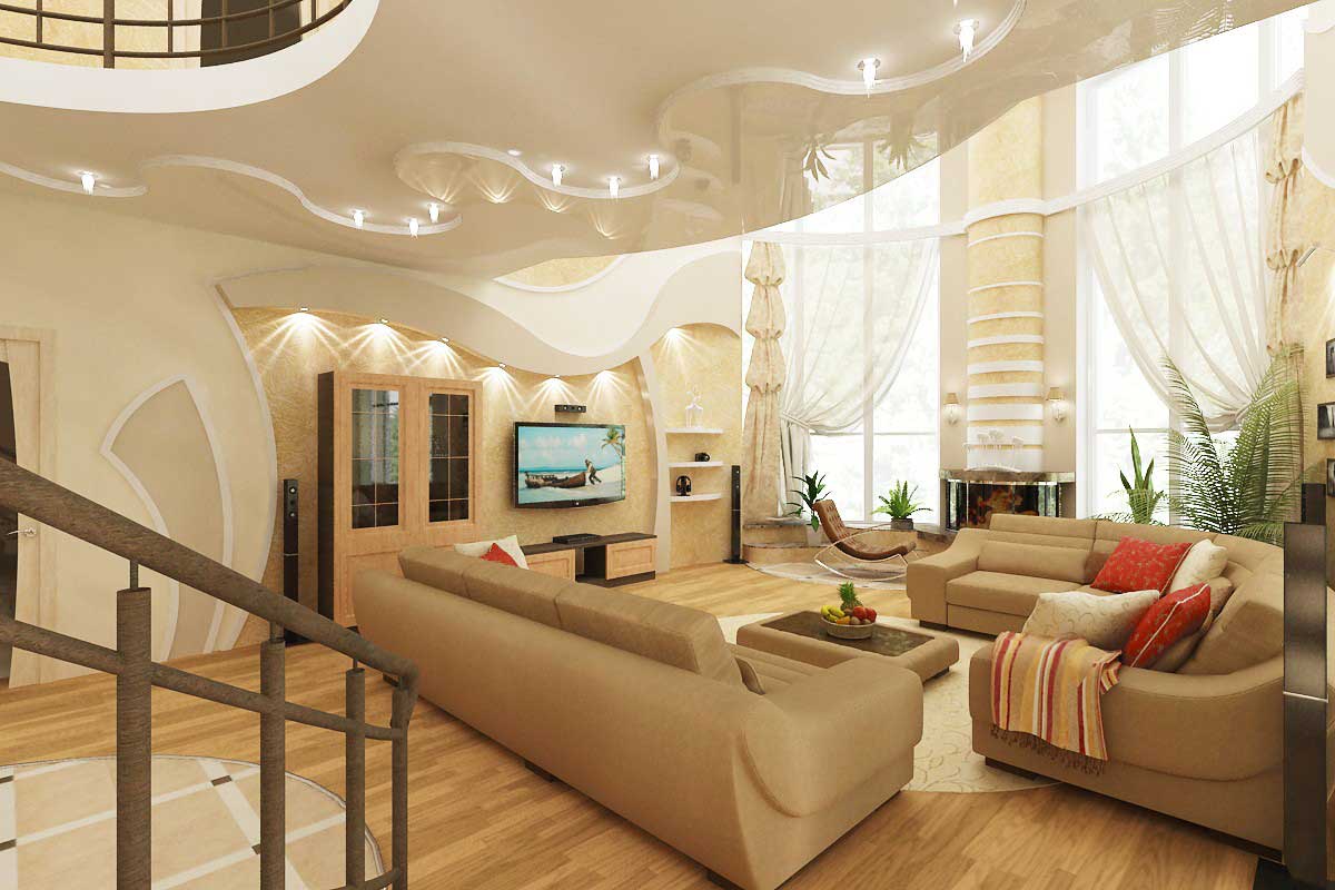 Le salon d'une maison privée est plus spacieux que dans n'importe quel appartement. Par conséquent, travailler sur sa conception est plus intéressant.