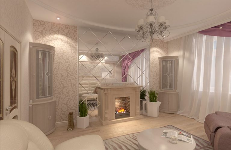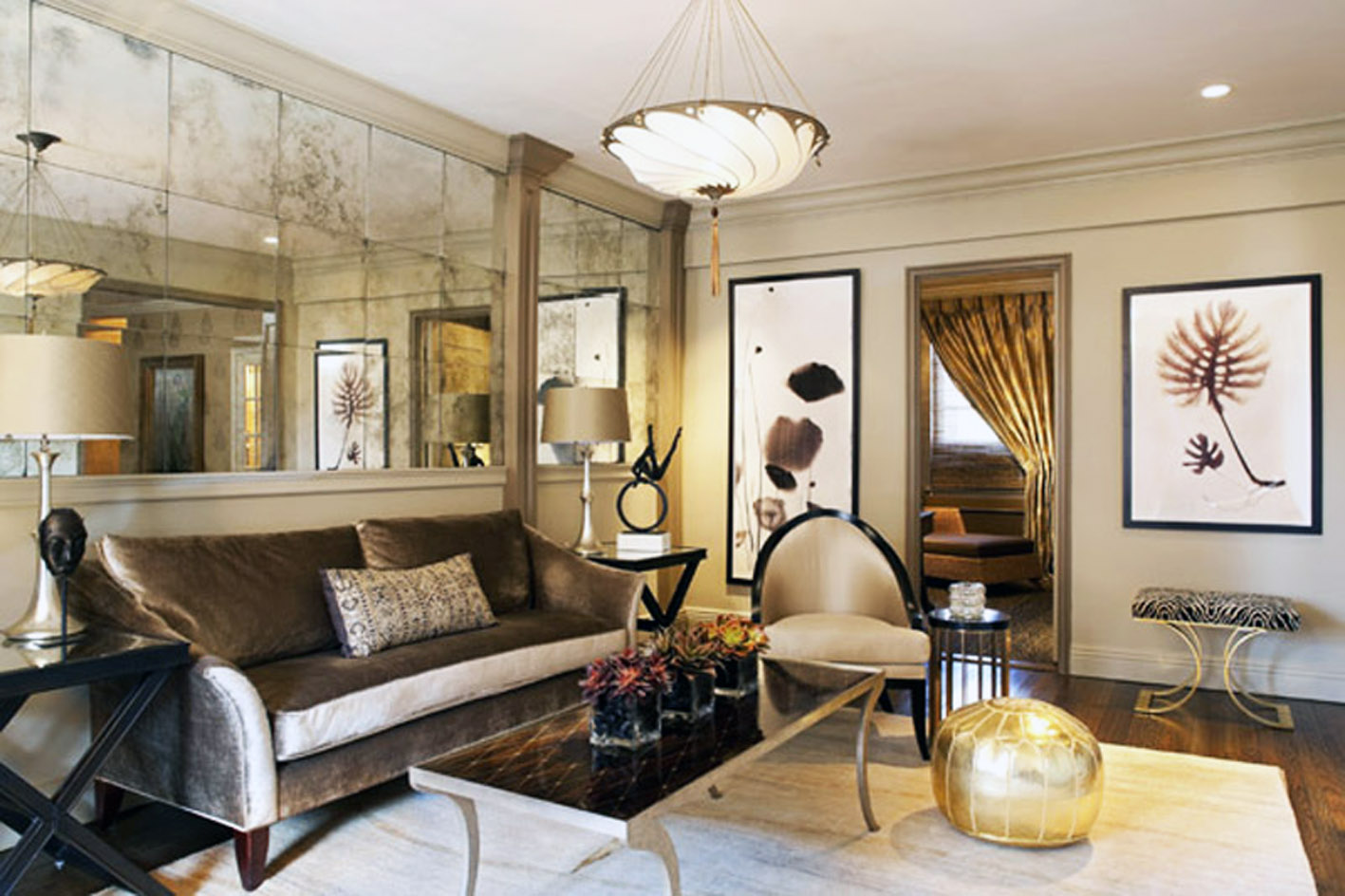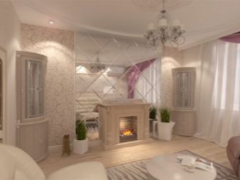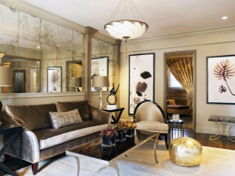 Une autre idée éprouvée consiste à installer de grands miroirs. Ce n'est pas seulement beau, mais aussi pratique. Surtout si vous avez des vêtements dans votre salon. En essayant, en travaillant, vous pourrez à tout moment évaluer votre apparence.