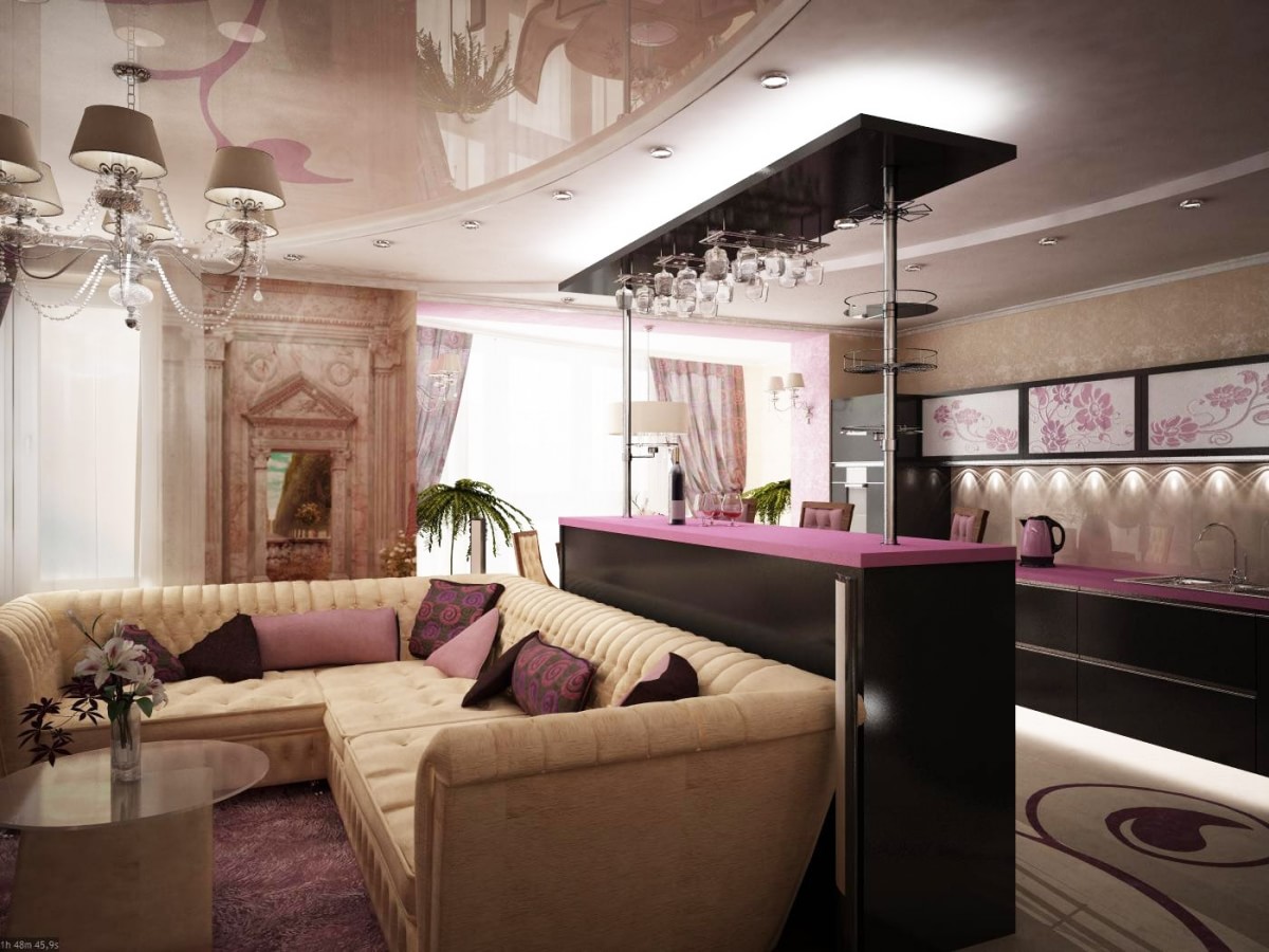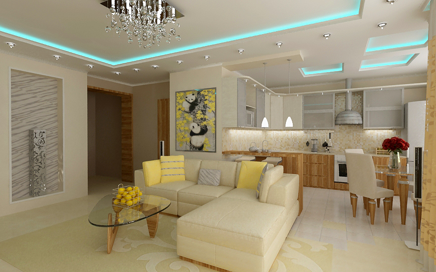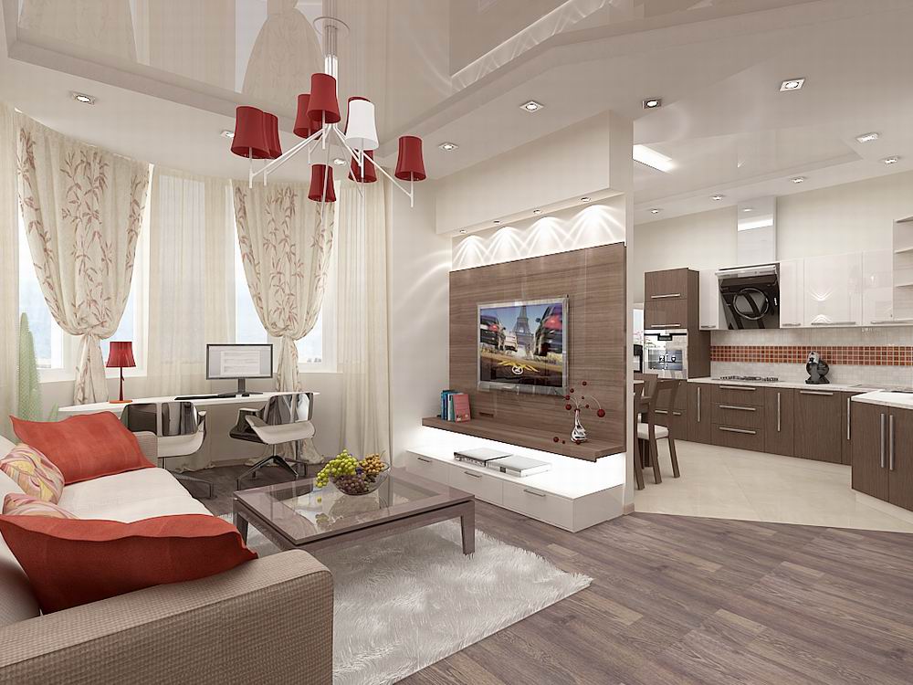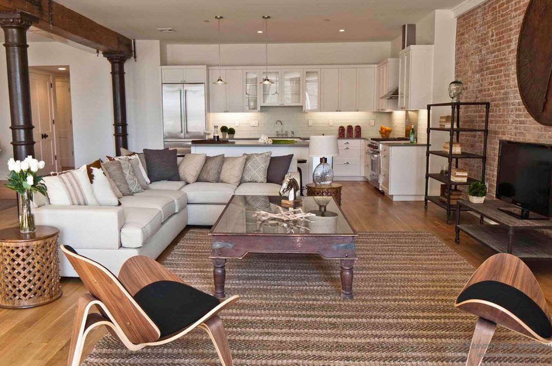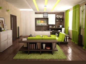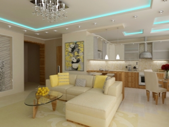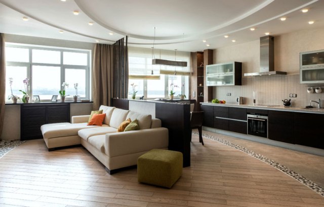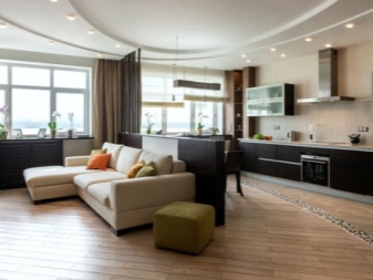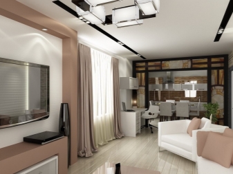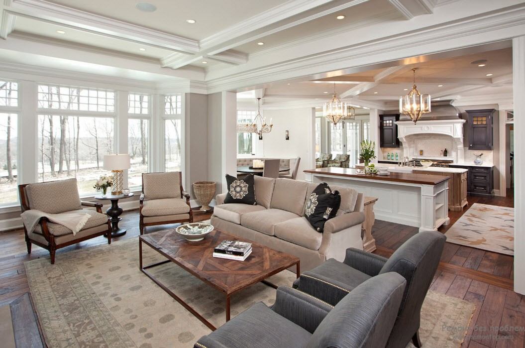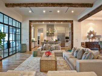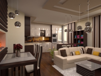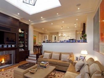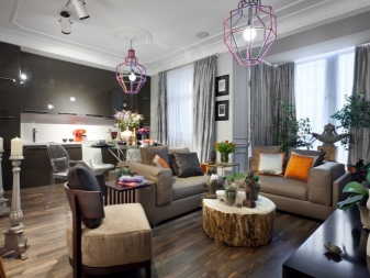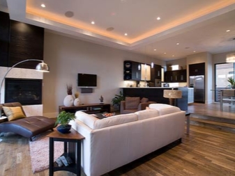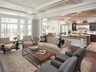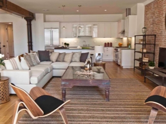 Très souvent, le salon est combiné avec d'autres pièces. Le plus souvent c'est la cuisine. Une telle disposition simple vous permet de cuisiner à votre guise tout en regardant votre maison. La zone de travail et la salle à manger sont rarement situées dans la cuisine. Ainsi, les locaux combinés sont une découverte utile.