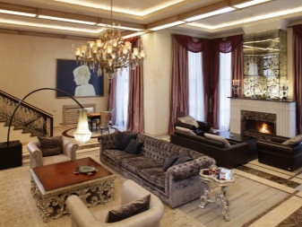 Mais même si vous avez un salon spacieux dans votre maison, vous ne devez pas remplir tous les compteurs gratuits avec des objets et un décor. Réfléchissez à la conception de la pièce en tenant compte de ses caractéristiques et des nuances de la vie dans une maison de campagne située dans un village de vacances ou dans un village.