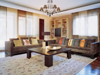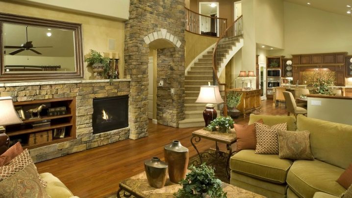 L'enregistrement de la salle dans les maisons est souvent compliqué par les caractéristiques de la disposition. C'est souvent dans le salon qu'il y a une sortie vers les chambres ou les escaliers menant au deuxième étage. Dans ce cas, vous devez vous adapter à la disposition et essayer de disposer tous les meubles de manière à ne pas gêner le passage libre.