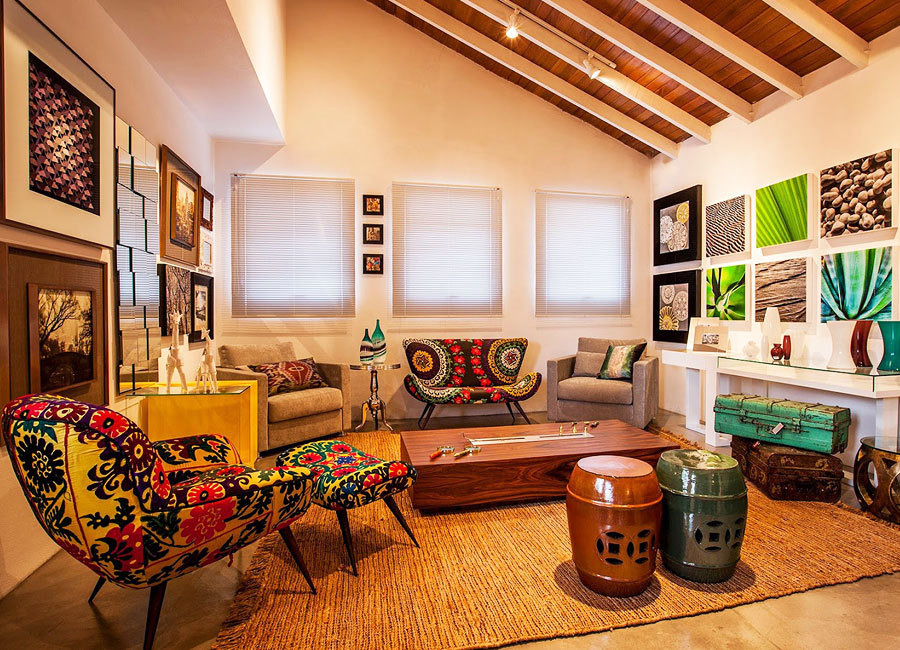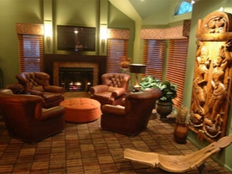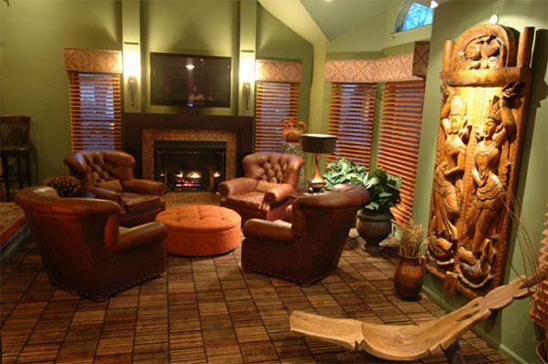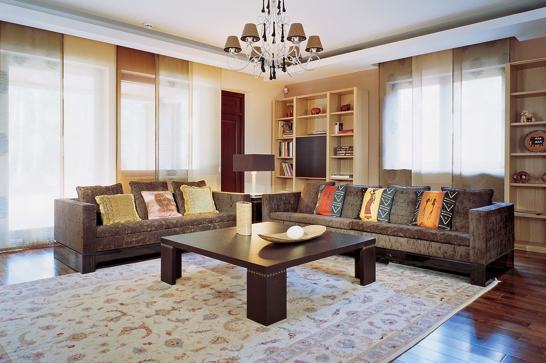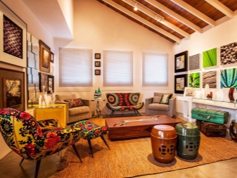 Le salon de ce style s'avère également très intéressant et est apprécié par tous les membres de la famille. Dans cette salle, vous pouvez rassembler les différentes parties et les combiner à votre guise. Dans la même pièce, vous pouvez combiner les détails typiques de différents pays. Par exemple, des tables basses japonaises peintes en caractères chinois, des canapés et des vases dans le style égyptien. Un tel salon est un lieu idéal pour ceux qui voyagent constamment et apportent avec eux un grand nombre de souvenirs de différents pays.