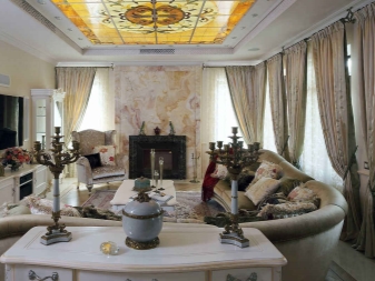 Les rideaux pour le salon, aussi, peuvent choisir différents. La meilleure option - des rideaux au sol, qui conviennent à un salon classique et à un style moderne.