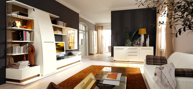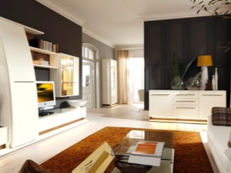 Mais dans une pièce de style moderne, il sera intéressant de regarder les meubles avec des formes simples et un minimum de décoration. Des étagères en métal ou en verre, des tables confortables et d’autres objets intéressants peuvent être utilisés pour décorer les salons dans un style minimalisme ou high-tech.
