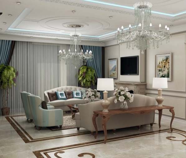 Classic est un style qui a fait ses preuves et qui ne change pas sous l’influence de la mode. Cette salle dans le style classique sera pertinente maintenant, et plusieurs décennies plus tard. Un salon de style classique est une combinaison de lignes simples, de couleurs discrètes et de matériaux de finition coûteux.