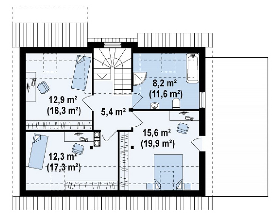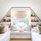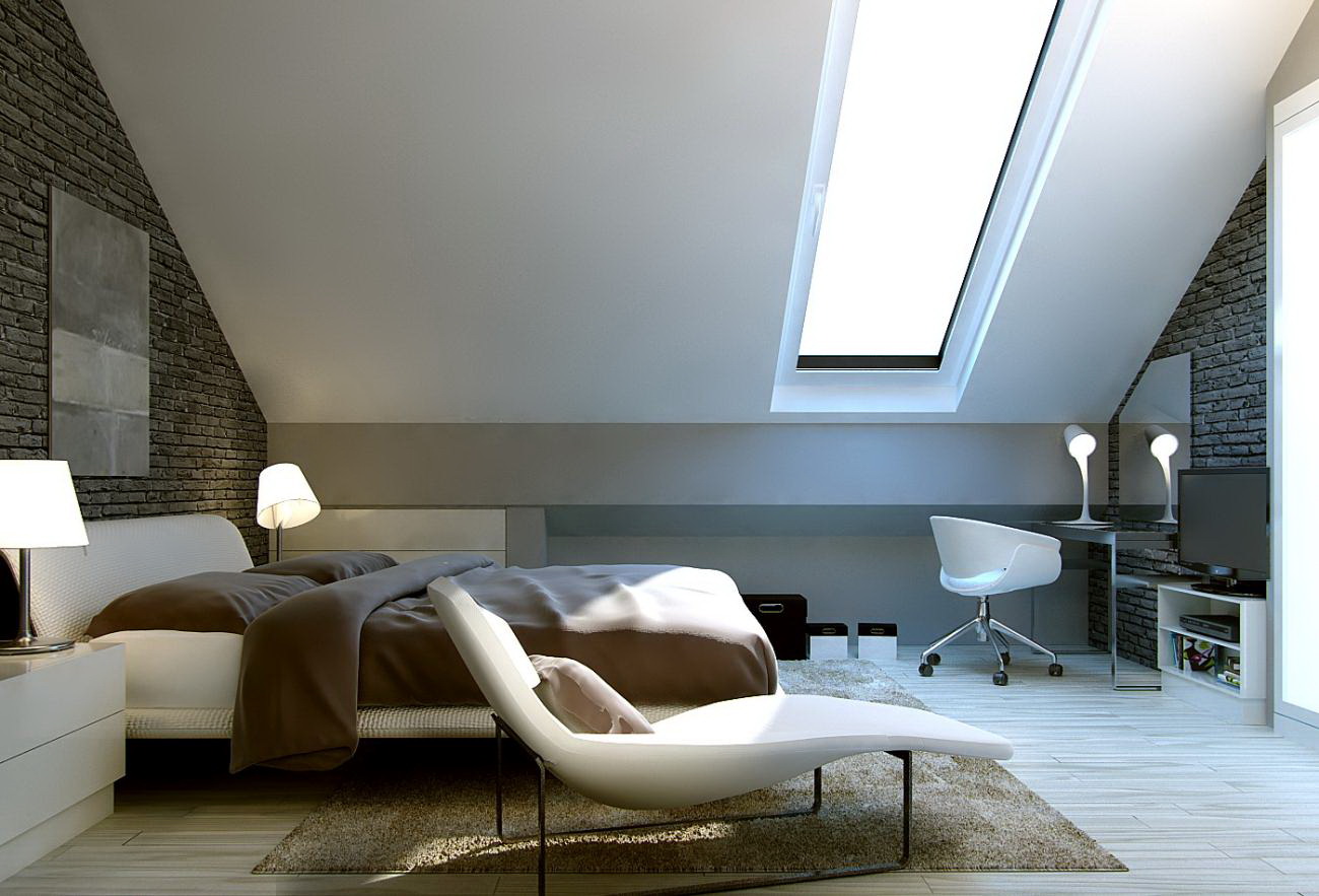 Lors de la rédaction d'une chambre, ils tiennent compte de l'emplacement du lit, des tables de chevet et d'un petit casier à vêtements. Si le grenier est une zone de récréation, une fausse cheminée y est placée, décorant le rebord avec des briques d'imitation. Pour la zone de travail, ils réfléchissent au coin afin que la place du bureau soit située le plus près possible du mur.
