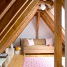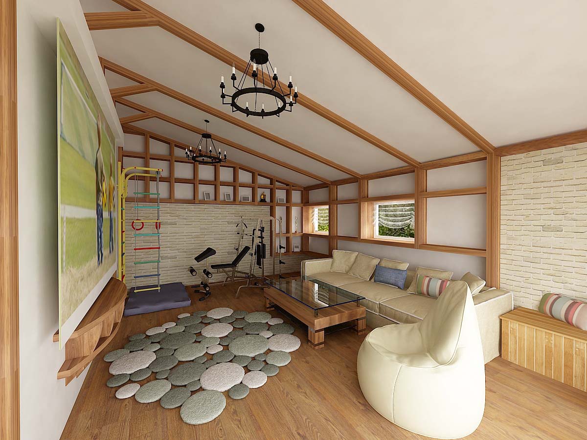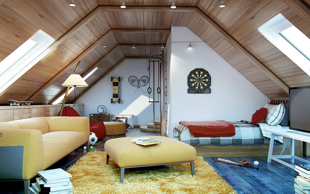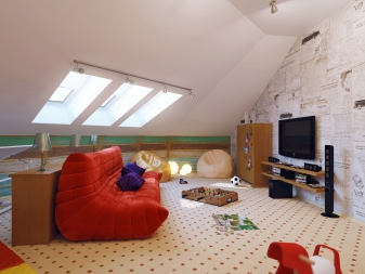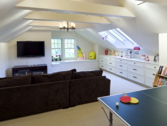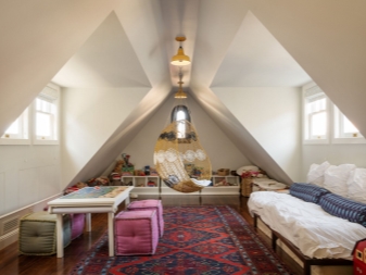La mansarde peut devenir un coin séparé d'un adulte ou d'un adolescent. Souvent, il est équipé d'une salle pour les enfants.