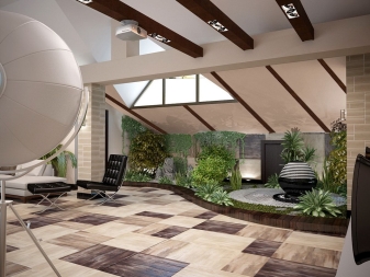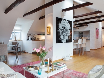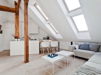 Malgré les limites des idées de conception, il est possible d'aménager le grenier de telle sorte qu'il ne ressemble pas à un style rustique coupé au sens habituel, ce qui est particulièrement important pour une personne moderne.