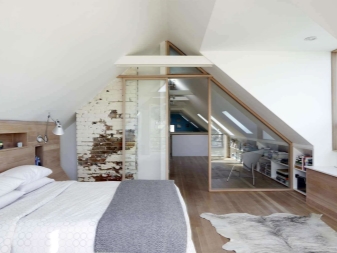 Pas toujours mansardée différente spacieuse de la pièce. Cela est dû au nombre limité de métrages alloués à la construction générale. Cette chambre a d'autres inconvénients:
