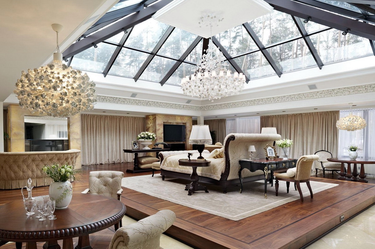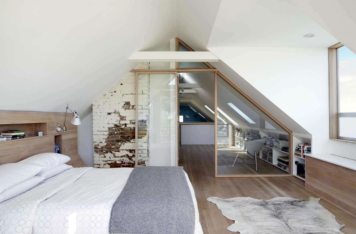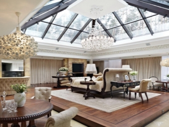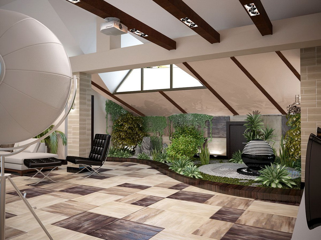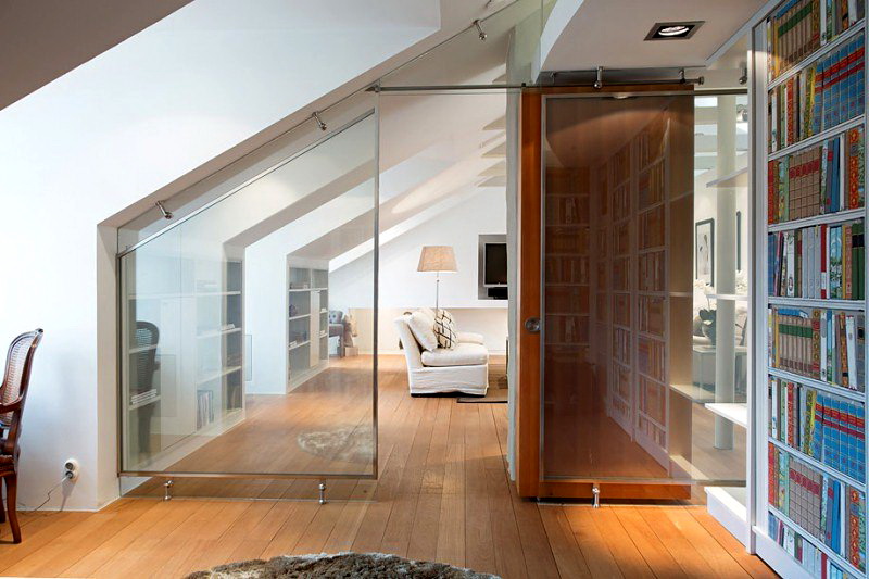 Cette pièce permet diverses expériences sur le but de la région: le grenier peut être un jardin d’hiver, un bureau, une chambre à coucher, une salle à manger ou un salon.