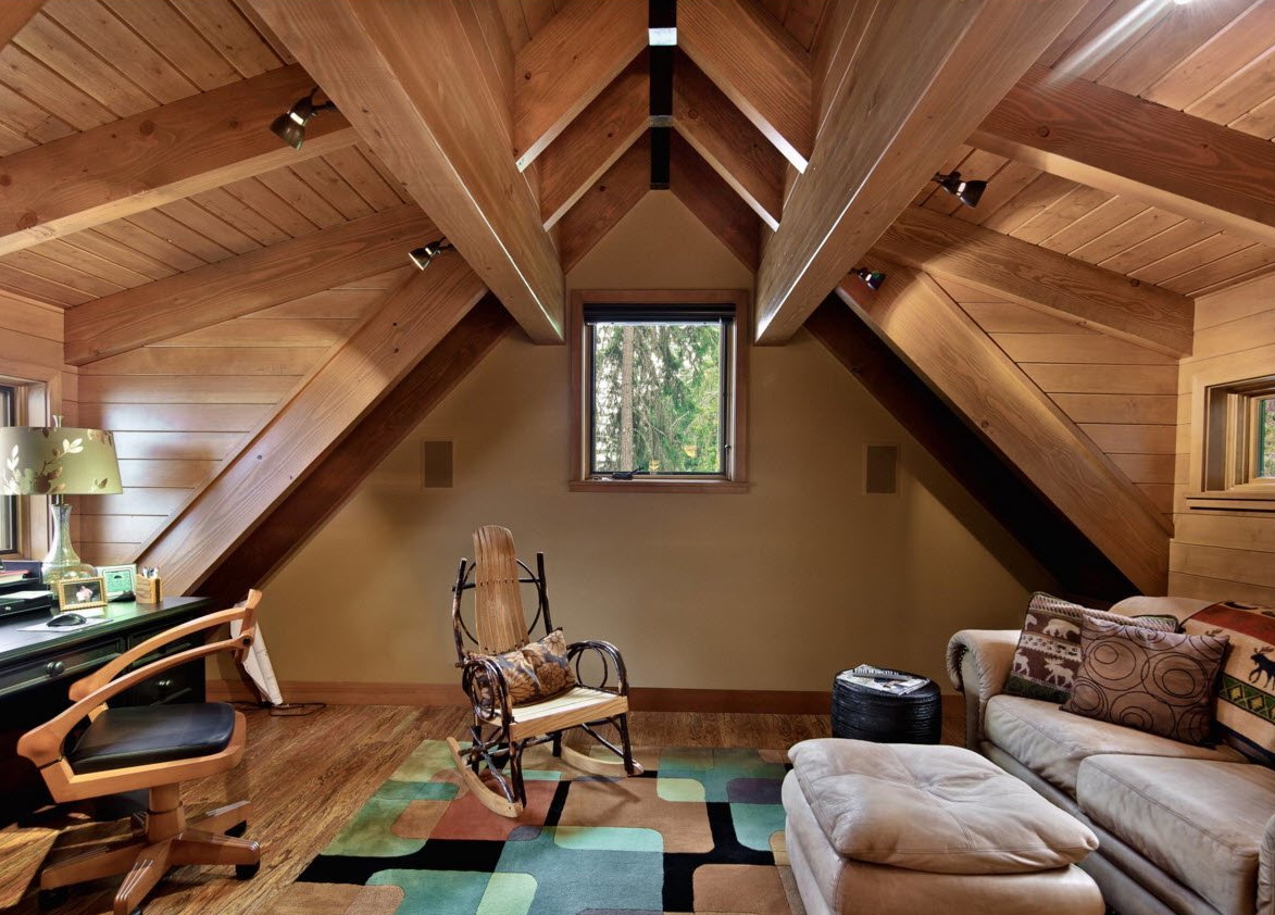 Le grenier est prévu au tout début de la construction. Pour ce faire, développez un projet de conception spécial.La chambre mansardée peut être une décoration de maison de campagne ou de maison de campagne, le point fort d'une habitation en bois. L'intérieur de toute maison privée ou chalet doté de cette fonctionnalité offre une approche de conception pour la disposition du toit à l'intérieur. La conception du grenier peut être simple, caractérisée par des lignes concises, un plafond en pente sans excès ou un complexe à plusieurs niveaux.