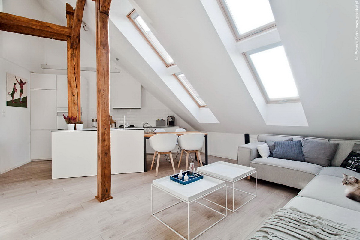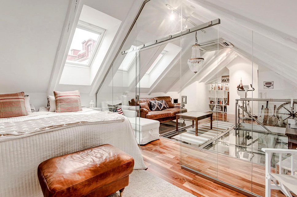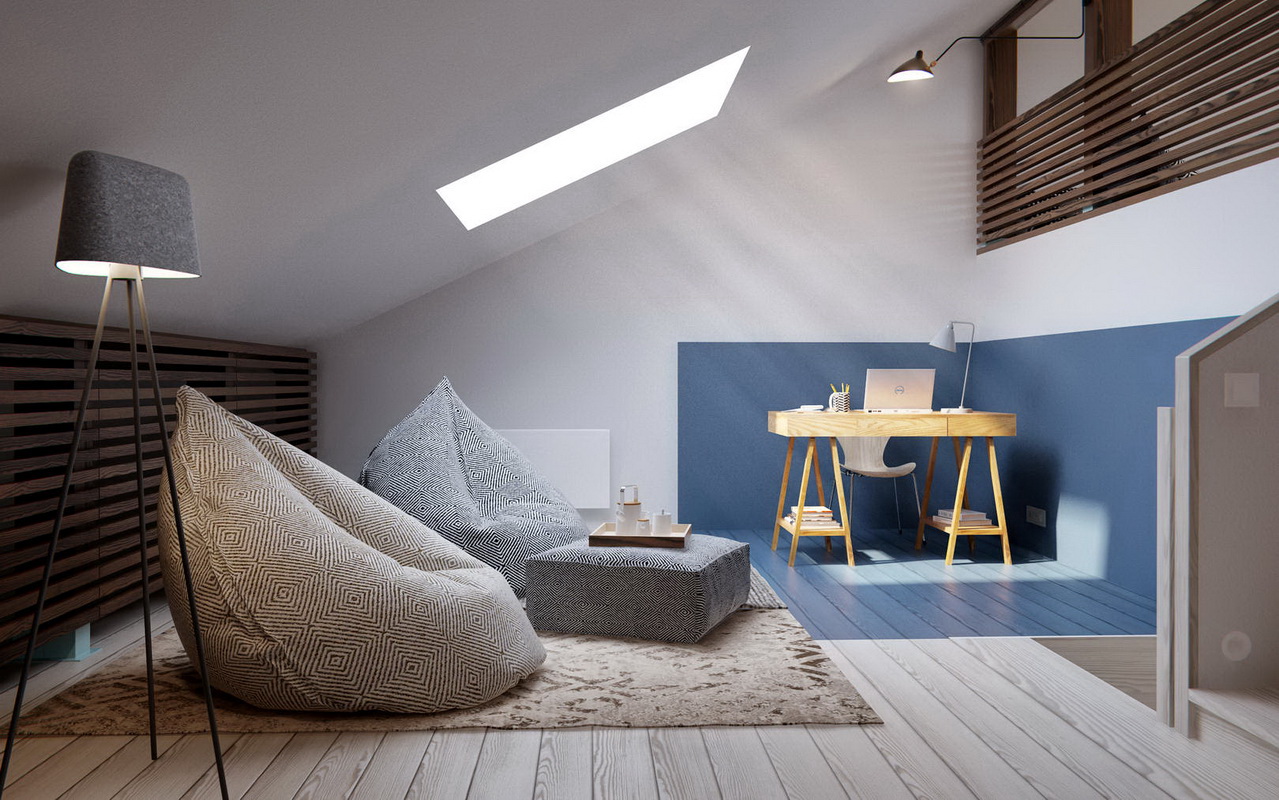 Avec une approche harmonieuse et approfondie de la disposition de la pièce mansardée, vous pouvez utiliser plusieurs techniques de zonage en même temps.